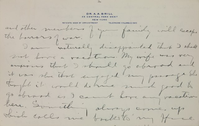 I am naturally disappointed that I shall not have a vacation. My wife was very anxious that I should go abroad and it was she that engaged [sic?] my passage. She thought it would do me much good to go abroad as I cannot have any vacation here. Something always comes up which calls me back to my office.