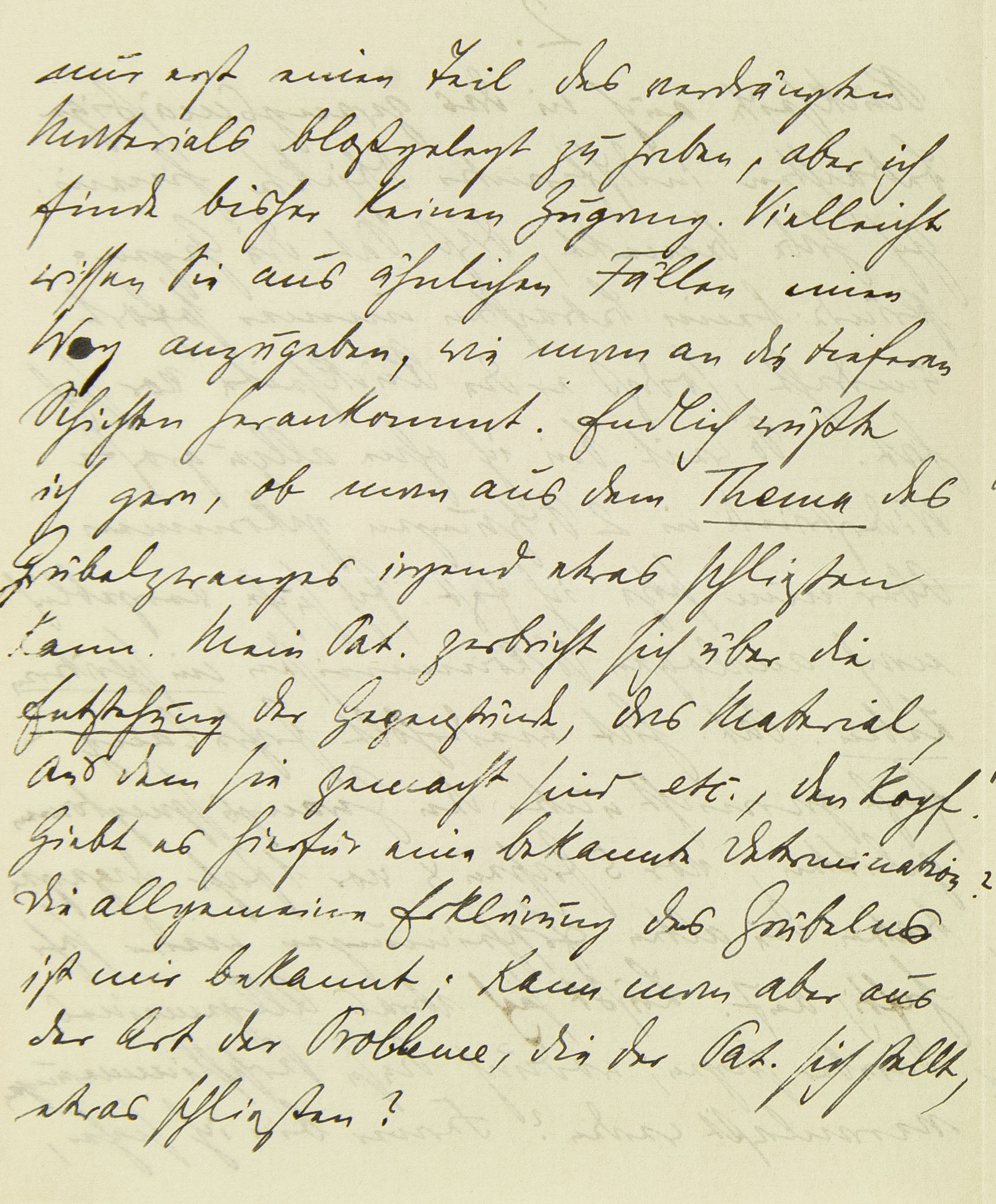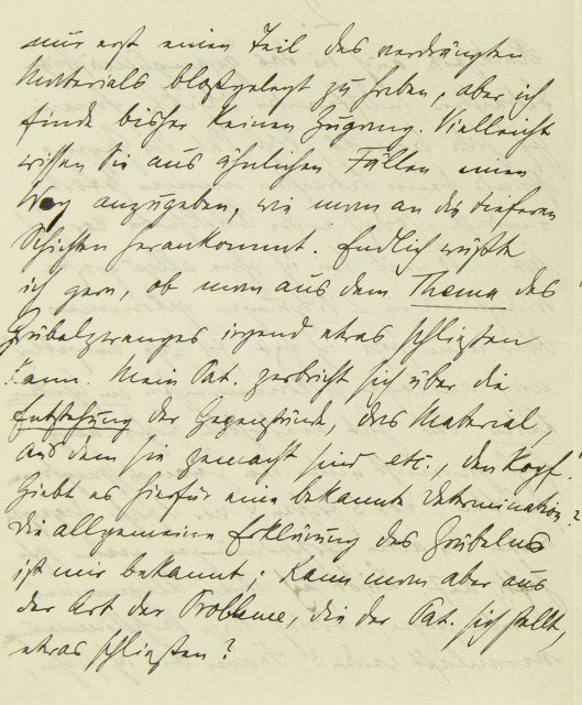nur erst einen Teil des verdrängten Materials bloßgelegt zu haben, aber ich finde bisher keinen Zugang. Vielleicht wissen Sie aus ähnlichen Fällen einen Weg anzugeben, wie man an die tieferen Schichten herankommt. Endlich wüßte ich gern, ob man aus dem Thema des Grübelzwanges irgend etwas schließen kann. Mein Pat. zerbricht sich über die Entstehung der Gegenstände, das Material, aus dem sie gemacht sind etc., den Kopf. Gibt es hierfür eine bekannte Determination? Die allgemeine Erklärung des Grübelns ist mir bekannt; kann man aber aus der Art der Probleme, die der Pat. sich stellt, etwas schließen?