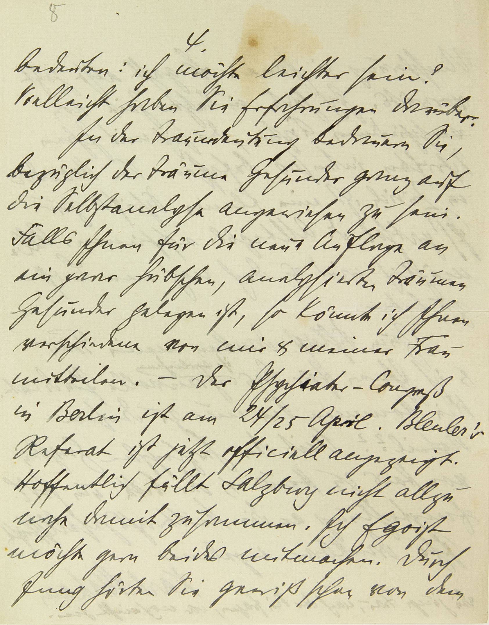 bedeuten: ich möchte leichter sein? Vielleicht haben Sie Erfahrungen darüber. In der Traumdeutung bedauern Sie, bezüglich der Träume Gesunder ganz auf die Selbstanalyse angewiesen zu sein. Falls Ihnen für die neue Auflage an ein paar hübschen, analysierten Träumen Gesunder gelegen ist, so könnte ich Ihnen verschiedene von mir und meiner Frau mitteilen. – Der Psychiater-Kongress in Berlin ist am 24./25. April. Bleulers Referat ist jetzt offiziell angezeigt. Hoffentlich fällt Salzburg nicht allzu nahe damit zusammen. Ich Egoist möchte gern beides mitmachen. Durch Jung hörten Sie gewiß schon von dem