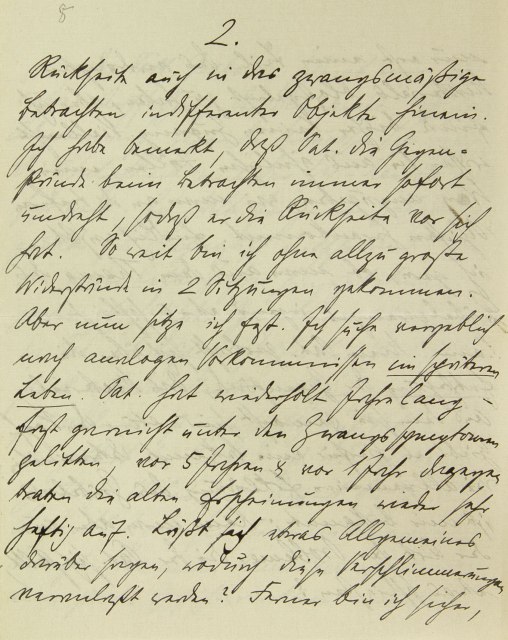 Rückseite auch in das zwangsmäßige Betrachten indifferenter Objekte hinein. Ich habe bemerkt, daß Pat. die Gegenstände beim Betrachten immer sofort umdreht, so daß er die Rückseite vor sich hat. Soweit bin ich ohne allzu große Widerstände in zwei Sitzungen gekommen. Aber nun sitze ich fest. Ich suche vergeblich nach analogen Vorkommnissen im späteren Leben. Pat. hat wiederholt jahrelang fast gar nicht unter den Zwangssymptomen gelitten, vor fünf Jahren und vor einem Jahr dagegen traten die alten Erscheinungen wieder sehr heftig auf. Läßt sich etwas Allgemeines darüber sagen, wodurch diese Verschlimmerungen veranlaßt werden? Ferner bin ich sicher,