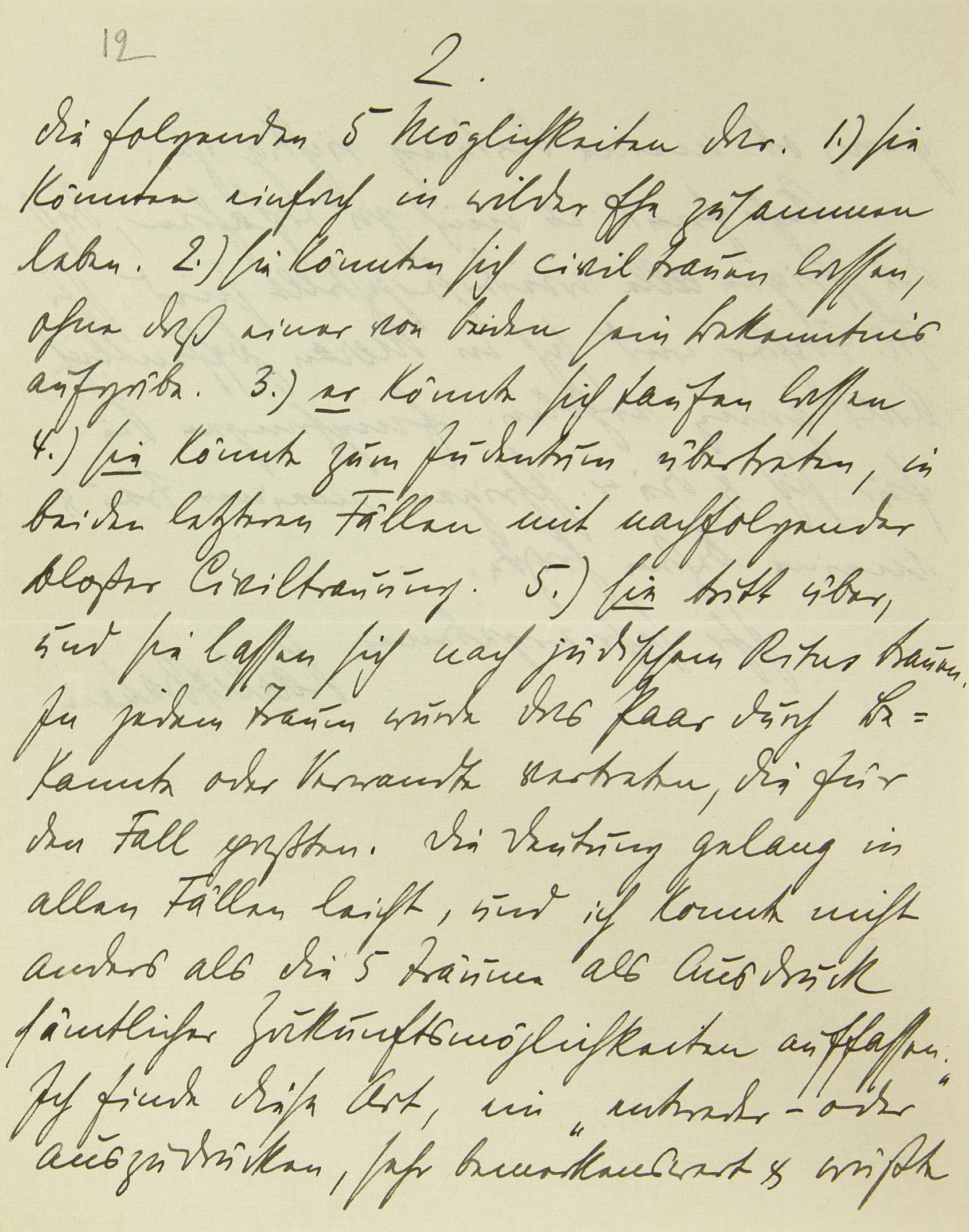 die folgenden fünf Möglichkeiten dar. 1.) sie könnten einfach in wilder Ehe zusammen leben. 2.) sie könnten sich zivil trauen lassen, ohne daß einer von beiden sein Bekenntnis aufgäbe. 3.) er könnte sich taufen lassen. 4.) sie könnte zum Judentum übertreten, in beiden letzteren Fällen mit nachfolgender bloßer Ziviltrauung. 5.) sie tritt über, und sie lassen sich nach jüdischem Ritus trauen. In jedem Traum wurde das Paar durch Verwandte oder Bekannte vertreten, die für den Fall paßten. Die Deutung gelang in allen Fällen leicht, und ich konnte nicht anders, als die fünf Träume als Ausdruck sämtlicher Zukunftsmöglichkeiten auffassen. Ich finde diese Art, ein »entweder – oder« auszudrücken, sehr bemerkenswert und wüßte