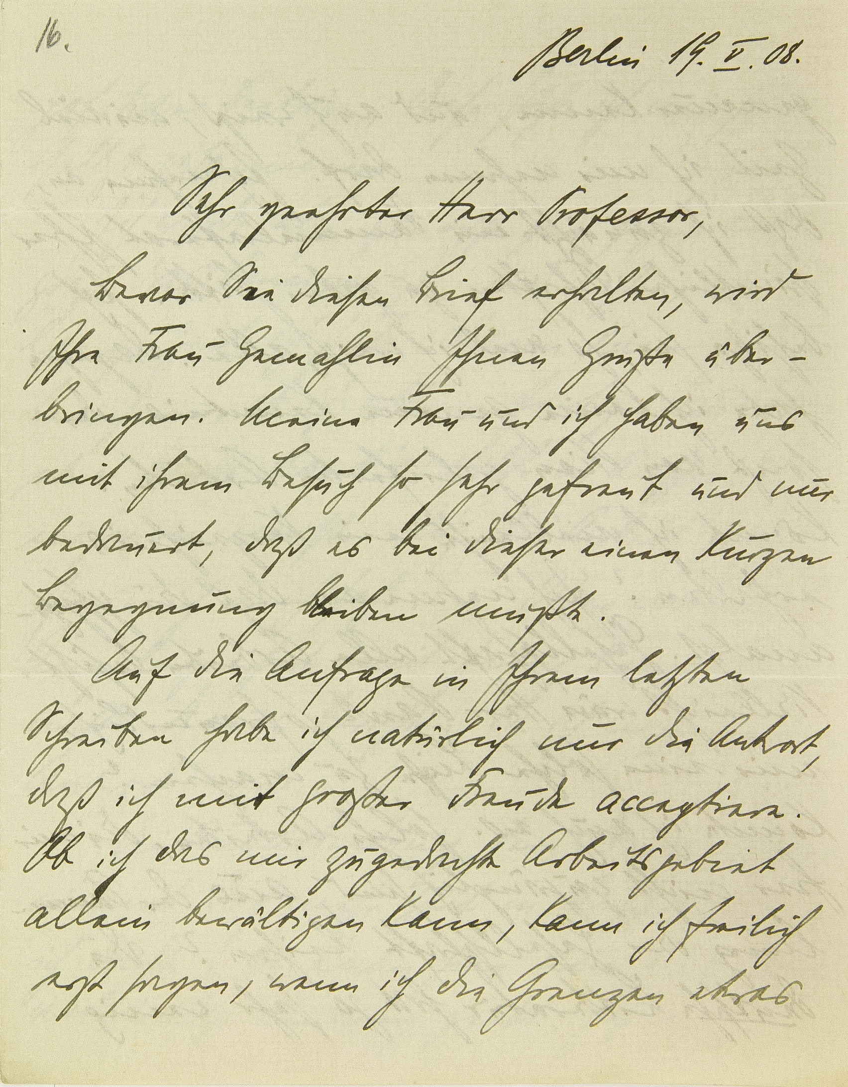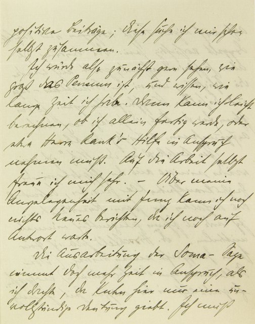 Bevor Sie diesen Brief erhalten, wird Ihre Frau Gemahlin Ihnen Grüße überbringen. Meine Frau und ich haben uns mit ihrem Besuch so sehr gefreut und nur bedauert, daß es bei dieser einen kurzen Begegnung bleiben mußte. Auf die Anfrage in Ihrem letzten Schreiben habe ich natürlich nur die Antwort, daß ich mit großer Freude akzeptiere. Ob ich das mir zugedachte Arbeitsgebiet allein bewältigen kann, kann ich freilich erst sagen, wenn ich die Grenzen etwas