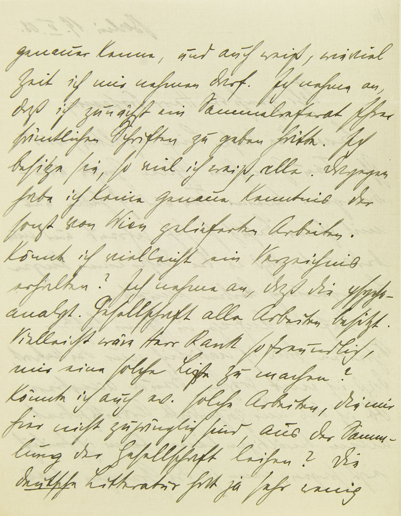 genauer kenne, und auch weiß, wieviel Zeit ich mir nehmen darf. Ich nehme an, daß ich zunächst ein Sammelreferat Ihrer sämtlichen Schriften zu geben hätte. Ich besitze sie, so viel ich weiß, alle. Dagegen habe ich keine genaue Kenntnis der sonst von Wien gelieferten Arbeiten. Könnte ich vielleicht ein Verzeichnis erhalten? Ich nehme an, daß die psychoanalytische Gesellschaft alle Arbeiten besitzt. Vielleicht wäre Herr Rank so freundlich, mir eine solche Liste zu machen? Könnte ich auch eventuell solche Arbeiten, die mir hier nicht zugänglich sind, aus der Sammlung der Gesellschaft leihen? Die deutsche Literatur hat ja sehr wenig