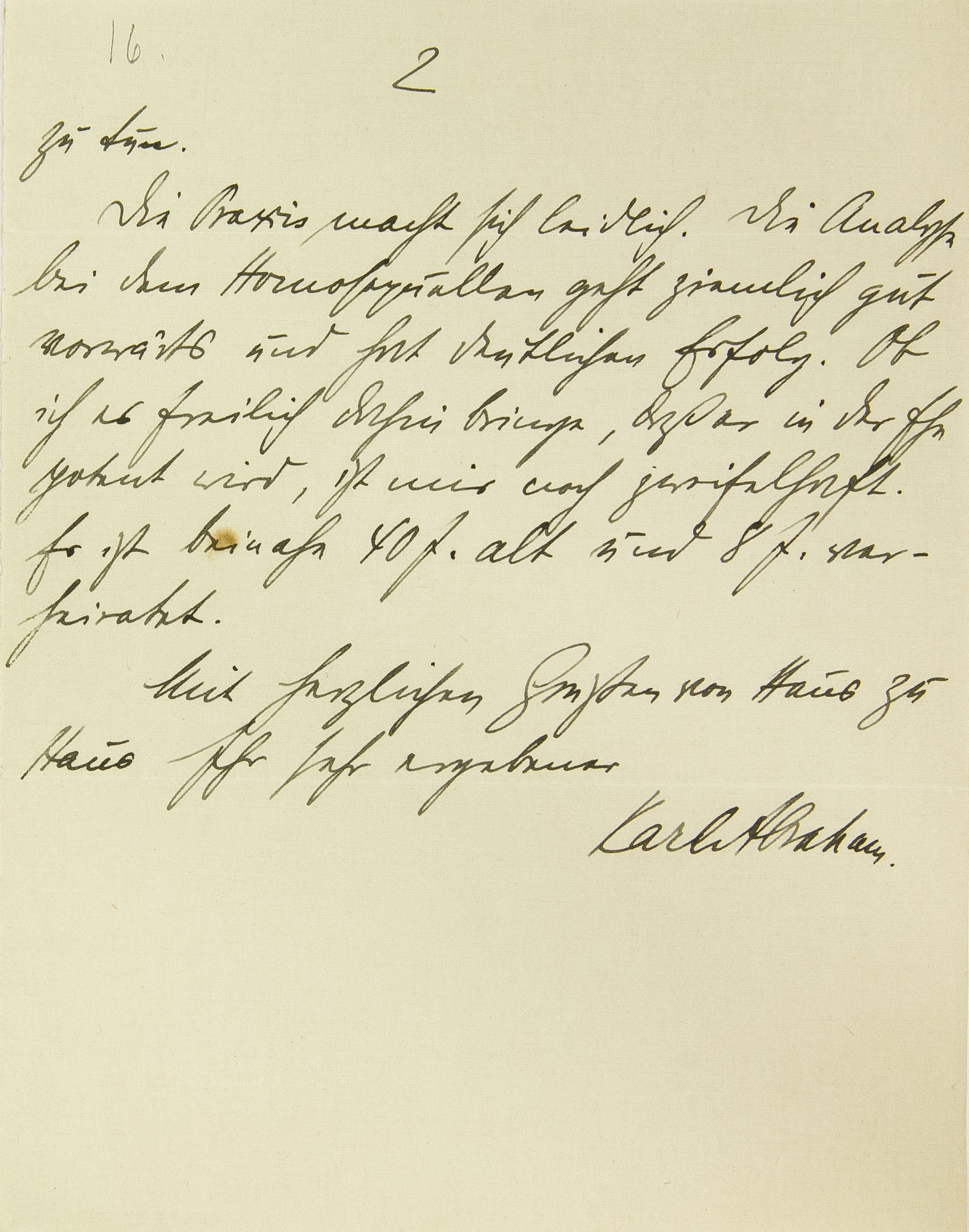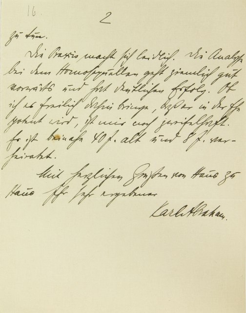 zu tun. Die Praxis macht sich leidlich. Die Analyse bei dem Homosexuellen geht ziemlich gut vorwärts und hat deutlichen Erfolg. Ob ich es freilich dahin bringe, daß er in der Ehe potent wird, ist mir noch zweifelhaft. Er ist beinahe 40 Jahre alt und acht Jahre verheiratet. Mit herzlichen Grüßen von Haus zu Haus Ihr sehr ergebener
