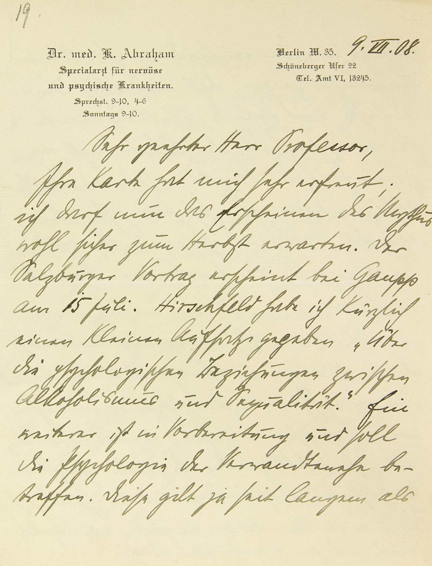 [Briefkopf I Berlin] 9. VII. 08.