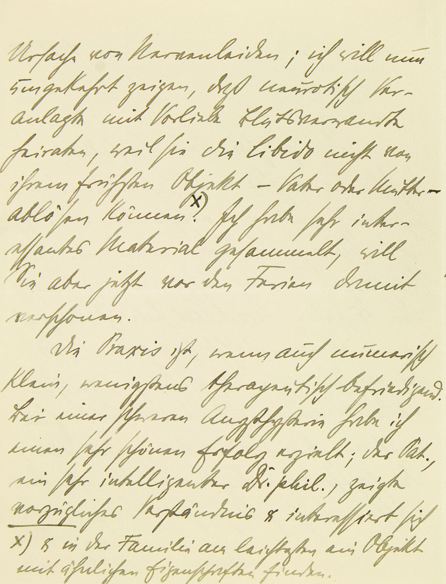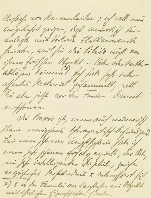 Ursache von Nervenleiden; ich will nun umgekehrt zeigen, daß neurotisch Veranlagte mit Vorliebe Blutsverwandte heiraten, weil sie die Libido nicht von ihrem frühsten Objekt – Vater oder Mutter – ablösen können. Ich habe sehr interessantes Material gefunden, will Sie aber jetzt vor den Ferien verschonen. Die Praxis ist, wenn auch numerisch klein, wenigstens therapeutisch befriedigend. Bei einer schweren Angsthysterie habe ich einen sehr schönen Erfolg erzielt; der Pat., ein sehr intelligenter Dr. phil., zeigte vorzügliches Verständnis und interessiert sich
