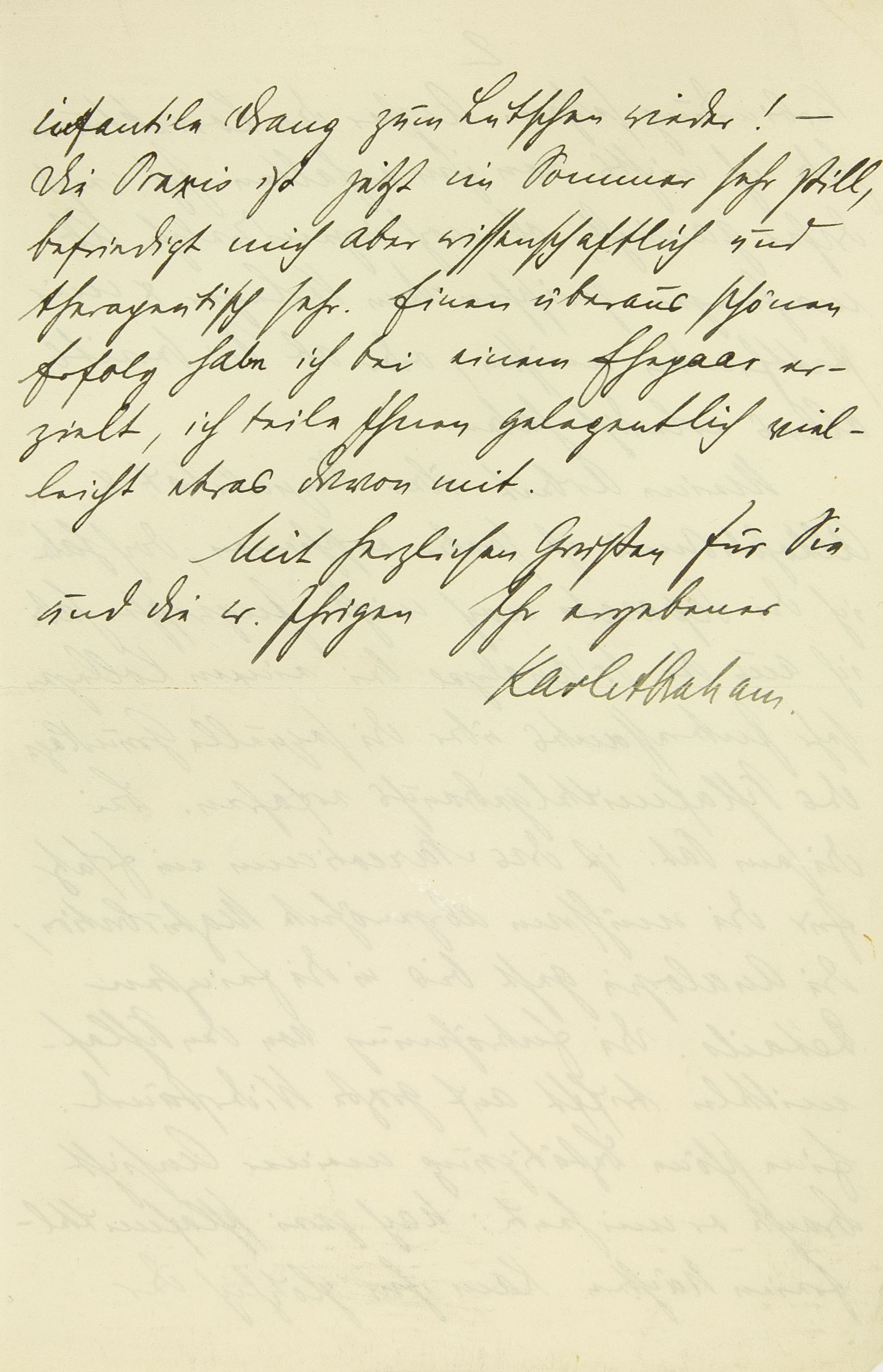 infantile Drang zum Lutschen wieder! – Die Praxis ist jetzt im Sommer sehr still, befriedigt mich aber wissenschaftlich und therapeutisch sehr. Einen überaus schönen Erfolg habe ich bei einem Ehepaar erzielt, ich teile Ihnen gelegentlich vielleicht etwas mit. Mit herzlichen Grüßen für Sie und die werten Ihrigen Ihr ergebener