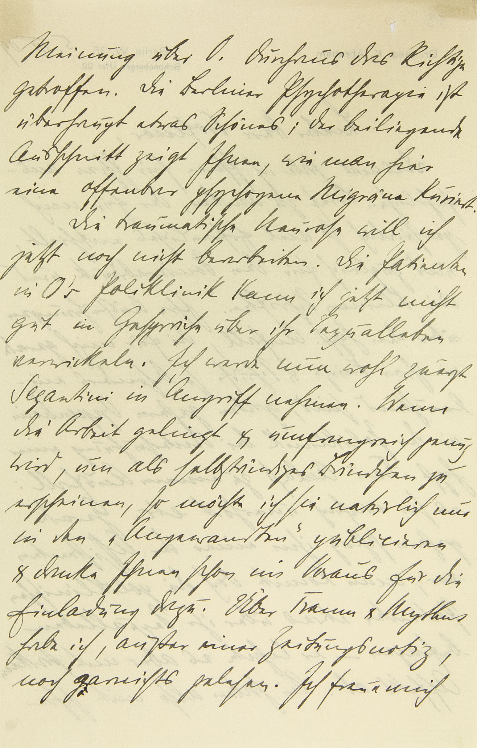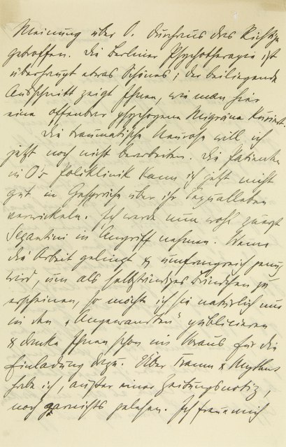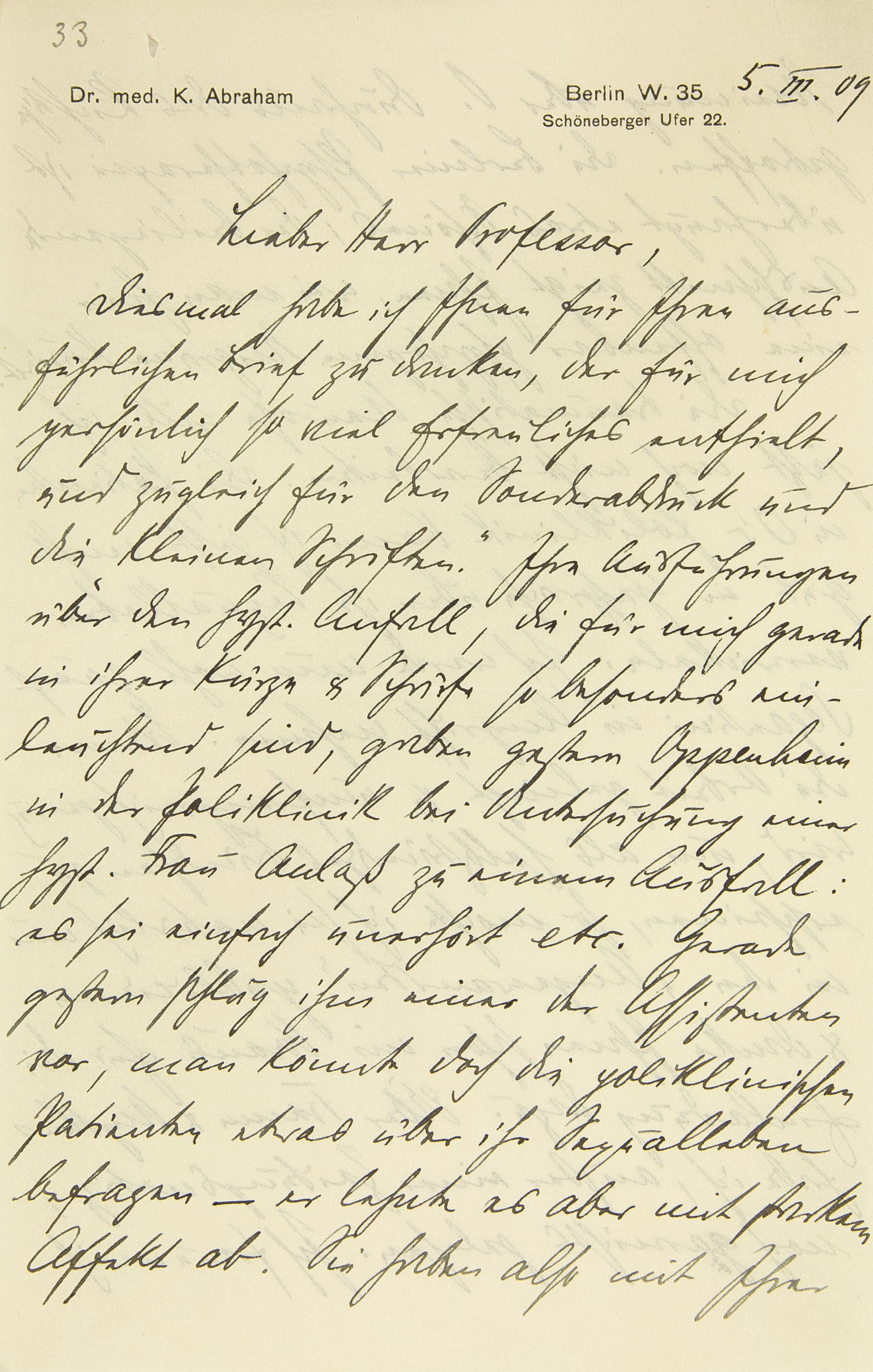 Diesmal habe ich Ihnen für Ihren ausführlichen Brief zu danken, der für mich persönlich soviel Erfreuliches enthielt, und zugleich für den Sonderabdruck und die »Kleinen Schriften«. Ihre Ausführungen über den hysterischen Anfall, die für mich gerade in ihrer Kürze und Schärfe so besonders einleuchtend sind, gaben gestern Oppenheim in der Poliklinik bei Untersuchung einer hysterischen Frau Anlaß zu einem Ausfall: es sei einfach unerhört etc. Gerade gestern schlug ihm einer der Assistenten vor, man könnte doch die poliklinischen Patienten etwas über ihr Sexualleben befragen – er lehnte es aber mit starkem Affekt ab. Sie haben also mit Ihrer