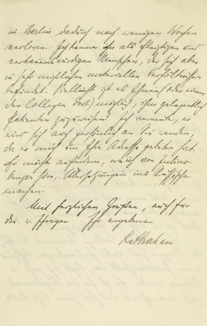 in Berlin dadurch nach wenigen Wochen verloren. Ich kenne ihn als fleißigen und vertrauenswürdigen Menschen, der sich aber in sehr mißlichen materiellen Verhältnissen befindet. Vielleicht ist es Ihnen (oder einem der Kollegen dort) möglich, ihm gelegentlich Patienten zuzuweisen? Ich vermute, er wird sich auch persönlich an Sie wenden, da er mich um Ihre Adresse gebeten hat. Er möchte außerdem, wie ich von Juliusburger höre, Übersetzungen ins Russische machen. Mit herzlichen Grüßen, auch für die werten Ihrigen Ihr ergebener