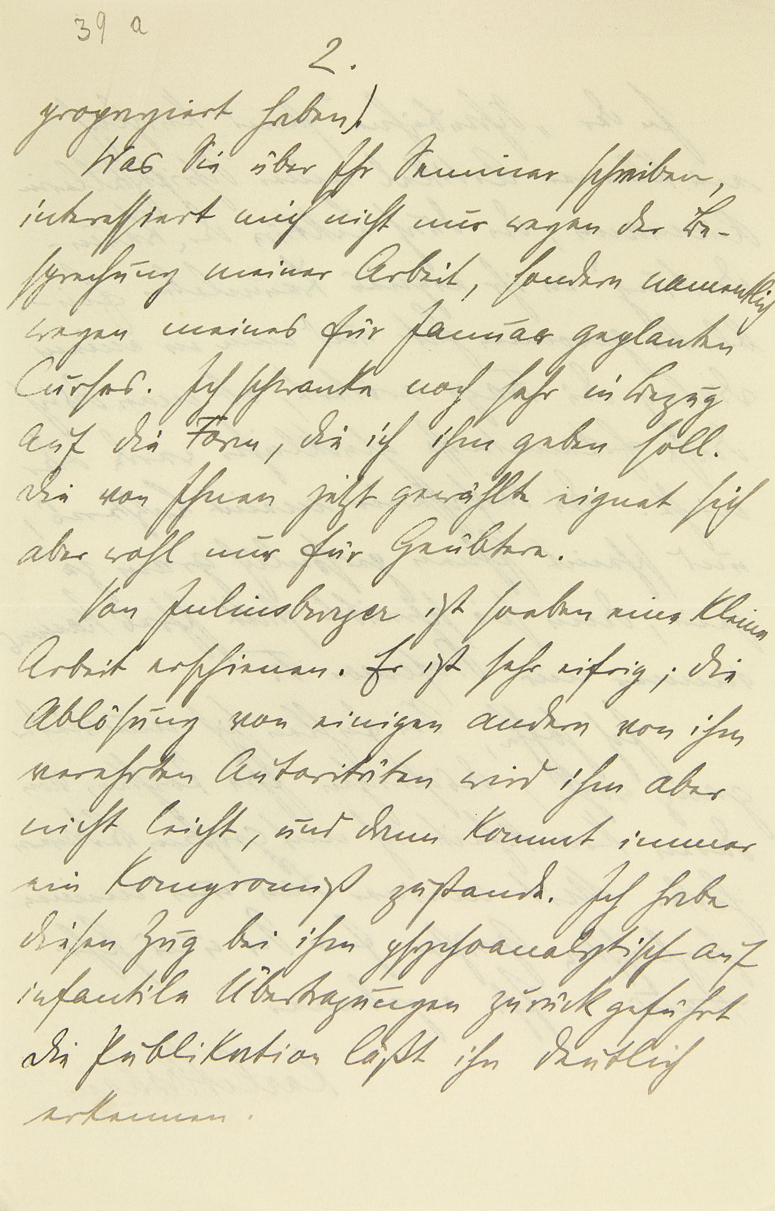 propagiert haben.) Was Sie über Ihr Seminar schreiben, interessiert mich nicht nur wegen der Besprechung meiner Arbeit, sondern namentlich wegen meines für Januar geplanten Kurses. Ich schwanke noch sehr in Bezug auf die Form, die ich ihm geben soll. Die von Ihnen jetzt gewählte eignet sich aber wohl nur für Geübtere. Von Juliusburger ist soeben eine kleine Arbeit erschienen. Er ist sehr eifrig; die Ablösung von einigen andern von ihm verehrten Autoritäten wird ihm aber nicht leicht, und dann kommt immer ein Kompromiß zustande. Ich habe diesen Zug bei ihm psychoanalytisch auf infantile Übertragungen zurückgeführt. Die Publikation läßt ihn deutlich erkennen.