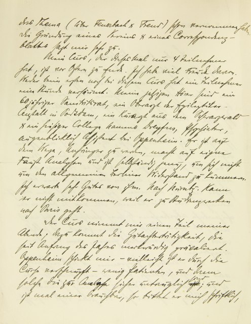 das Thema (Über Feuerbach und Freud) schon vernommen . Die Gründung eines Vereins und eines Korrespondenzblattes sagt mir sehr zu. Mein Kurs, der dieses Mal nur vier Teilnehmer hat, ist vor Ostern zu Ende. Ich habe viel Freude davon. Weder beim ersten noch bei diesem Kurs hat ein Teilnehmer eine Stunde versäumt. Meine jetzigen Hörer sind ein 60jähriger Sanitätsrat, ein Oberarzt der Epileptiker-Anstalt in Potsdam, ein Kurarzt aus dem Schwarzwald und ein hiesiger Kollege namens Dreyfus, Psychiater, augenblicklich Assistent bei Oppenheim. Er ist auf dem Wege, Anhänger zu werden, macht auf eigne Faust Analysen und ist selbständig genug, um sich nicht um den allgemeinen Berliner Widerstand zu kümmern. Ich erwarte sehr Gutes von ihm. Nach Nürnberg kann er nicht mitkommen, weil er zu Studienzwecken nach Paris geht. Der Kurs nimmt mir einen Teil meiner Abende; dazu kommt die Gutachtertätigkeit, die seit Anfang des Jahres merkwürdig prävaliert. Oppenheim schickt mir – vielleicht ist er durch die Kurse verschnupft – wenig Patienten, und dann solche, die zur Analyse sicher untauglich sind; und ist mal einer brauchbar, so bittet er mich schriftlich,