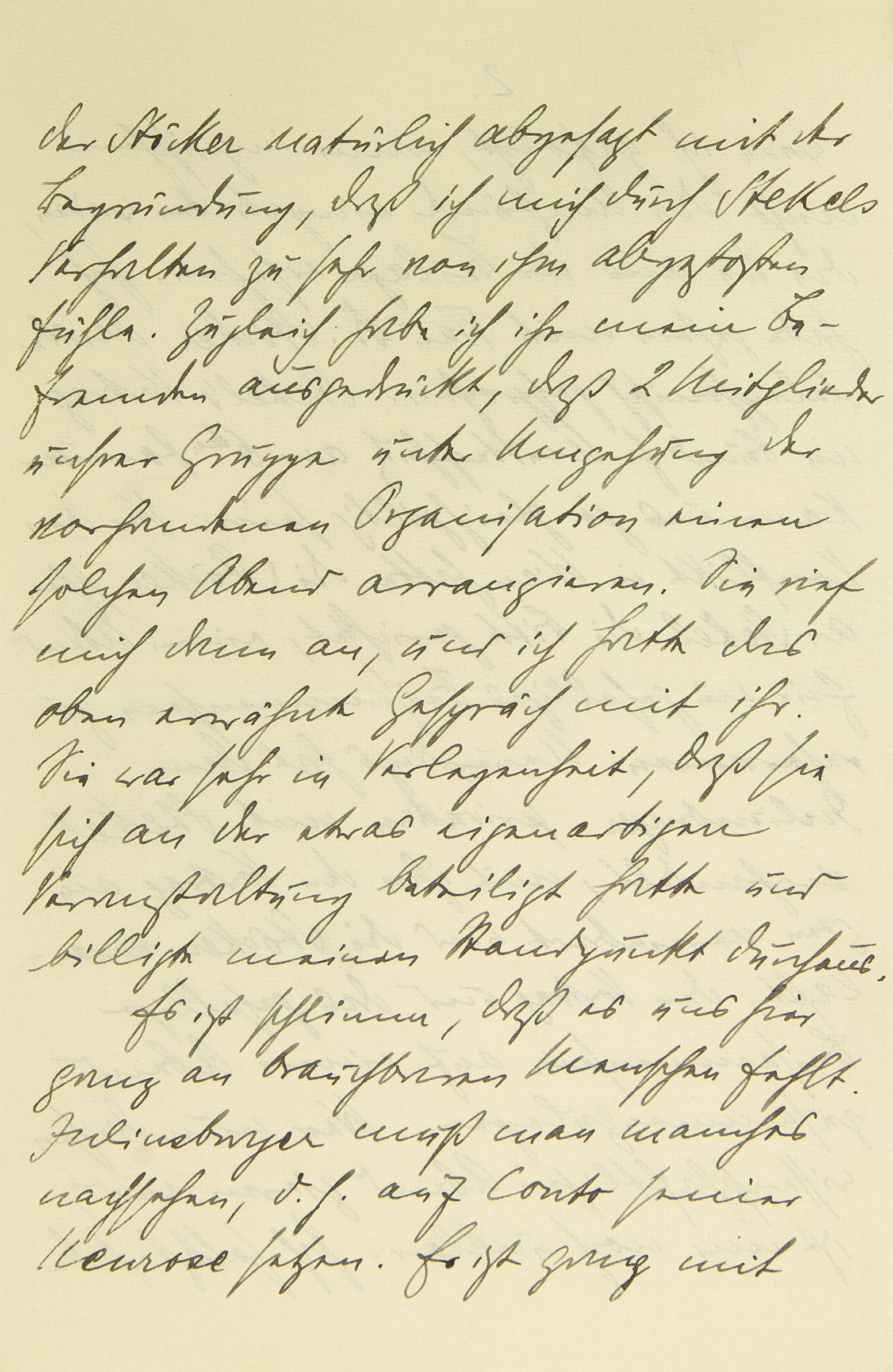 der Stöcker natürlich abgesagt mit der Begründung, daß ich mich durch Stekels Verhalten zu sehr von ihm abgestoßen fühle. Zugleich habe ich ihr mein Befremden ausgedrückt, daß zwei Mitglieder unsrer Gruppe unter Umgehung der vorhandenen Organisation einen solchen Abend arrangieren. Sie rief mich dann an, und ich hatte das oben erwähnte Gespräch mit ihr. Sie war sehr in Verlegenheit, daß sie sich an der etwas eigenartigen Veranstaltung beteiligt hatte, und billigte meinen Standpunkt durchaus. Es ist schlimm, daß es uns hier ganz an brauchbaren Menschen fehlt. Juliusburger muß man manches nachsehen, d.h. auf Konto seiner Neurose setzen. Er ist ganz mit