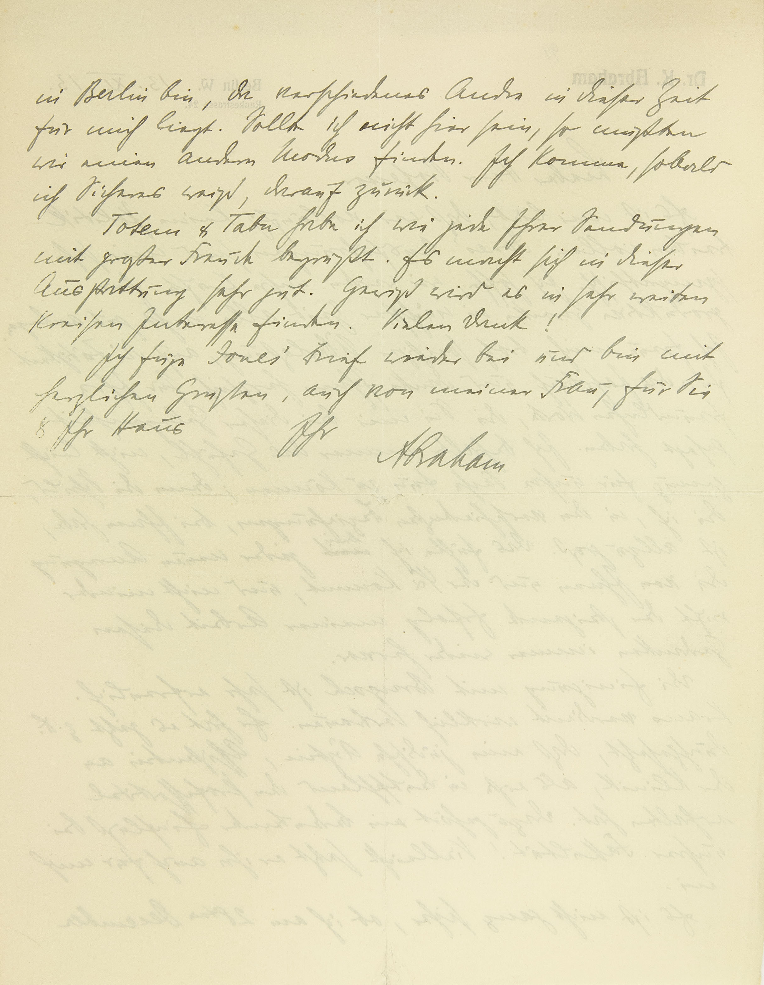 in Berlin bin, da verschiedenes andre in dieser Zeit für mich liegt. Sollte ich nicht hier sein, so müßten wir einen andern Modus finden. Ich komme, sobald ich Sicheres weiß, darauf zurück. Totem und Tabu habe ich wie jede Ihrer Sendungen mit großer Freude begrüßt. Es macht sich in dieser Ausstattung sehr gut. Gewiß wird es in sehr weiten Kreisen Interesse finden. Vielen Dank! Ich füge Jones’ Brief wieder bei und bin mit herzlichen Grüßen, auch von meiner Frau, für Sie und Ihr Haus
