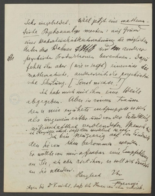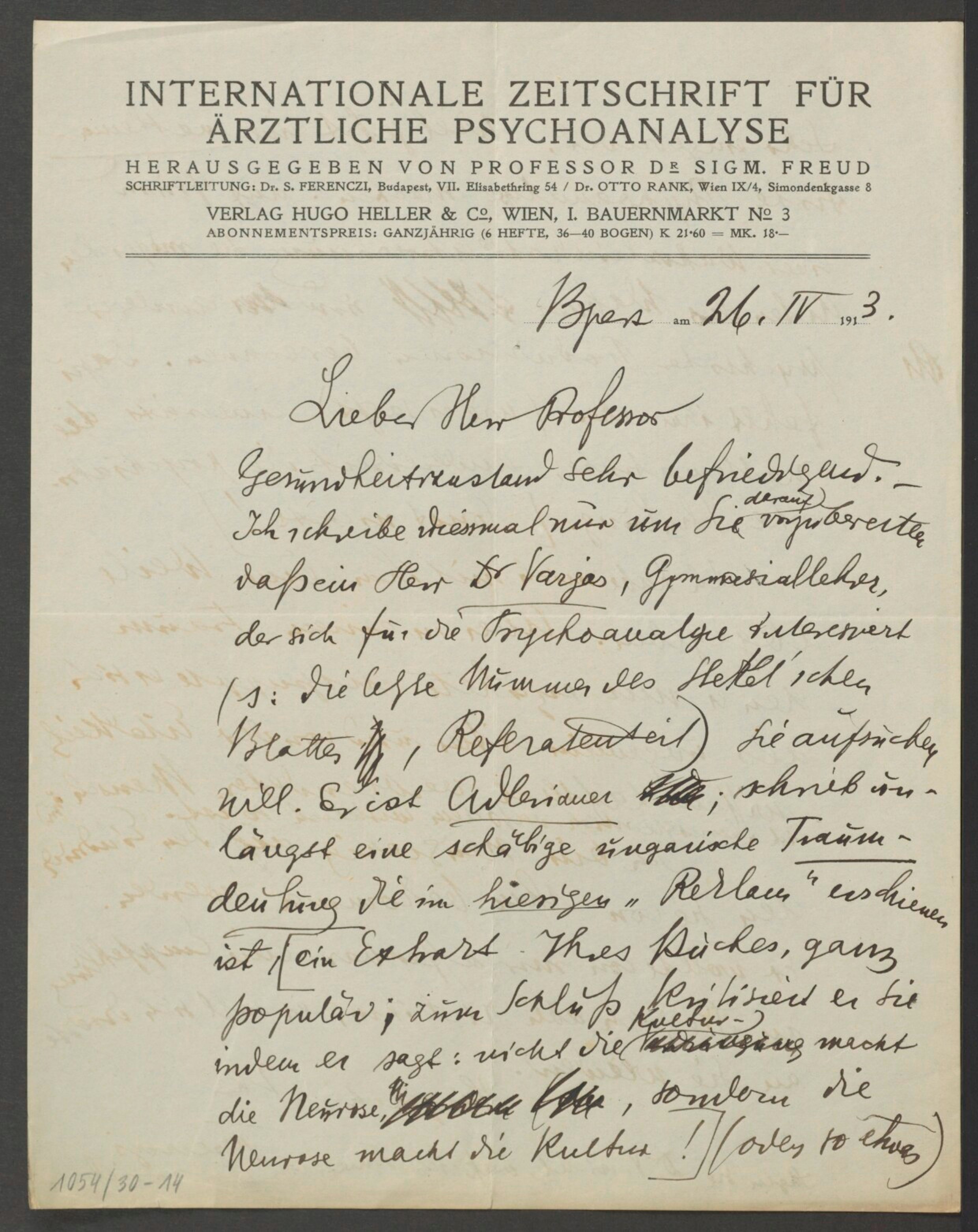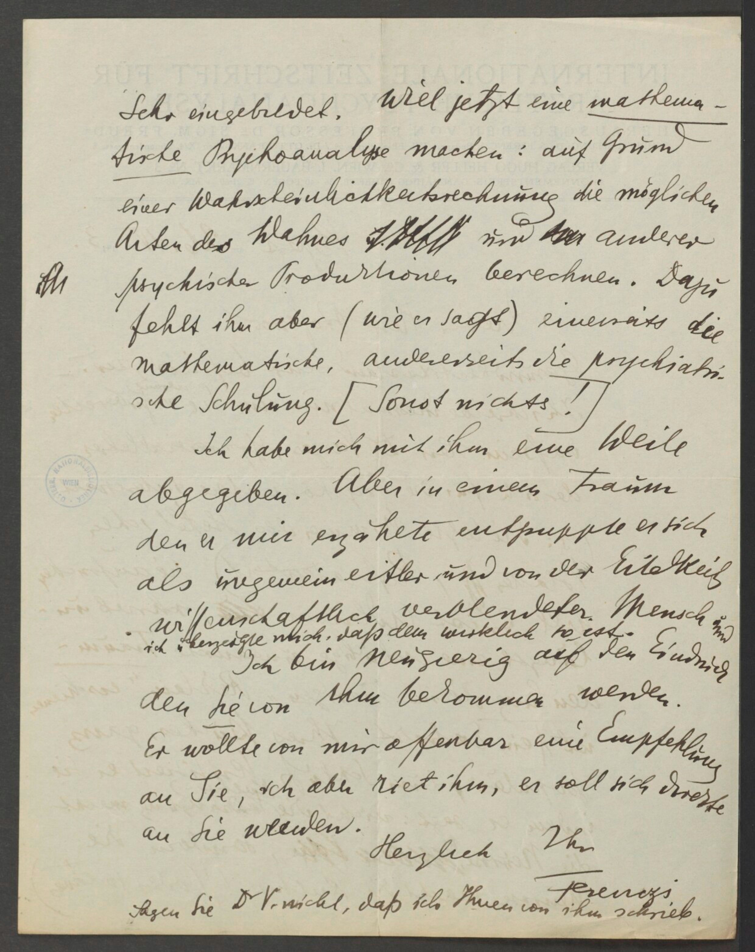 Freud, Sigmund, 1856-1939 [VerfasserIn] ; Ferenczi, Sándor, 1873-1933 [AdressatIn]