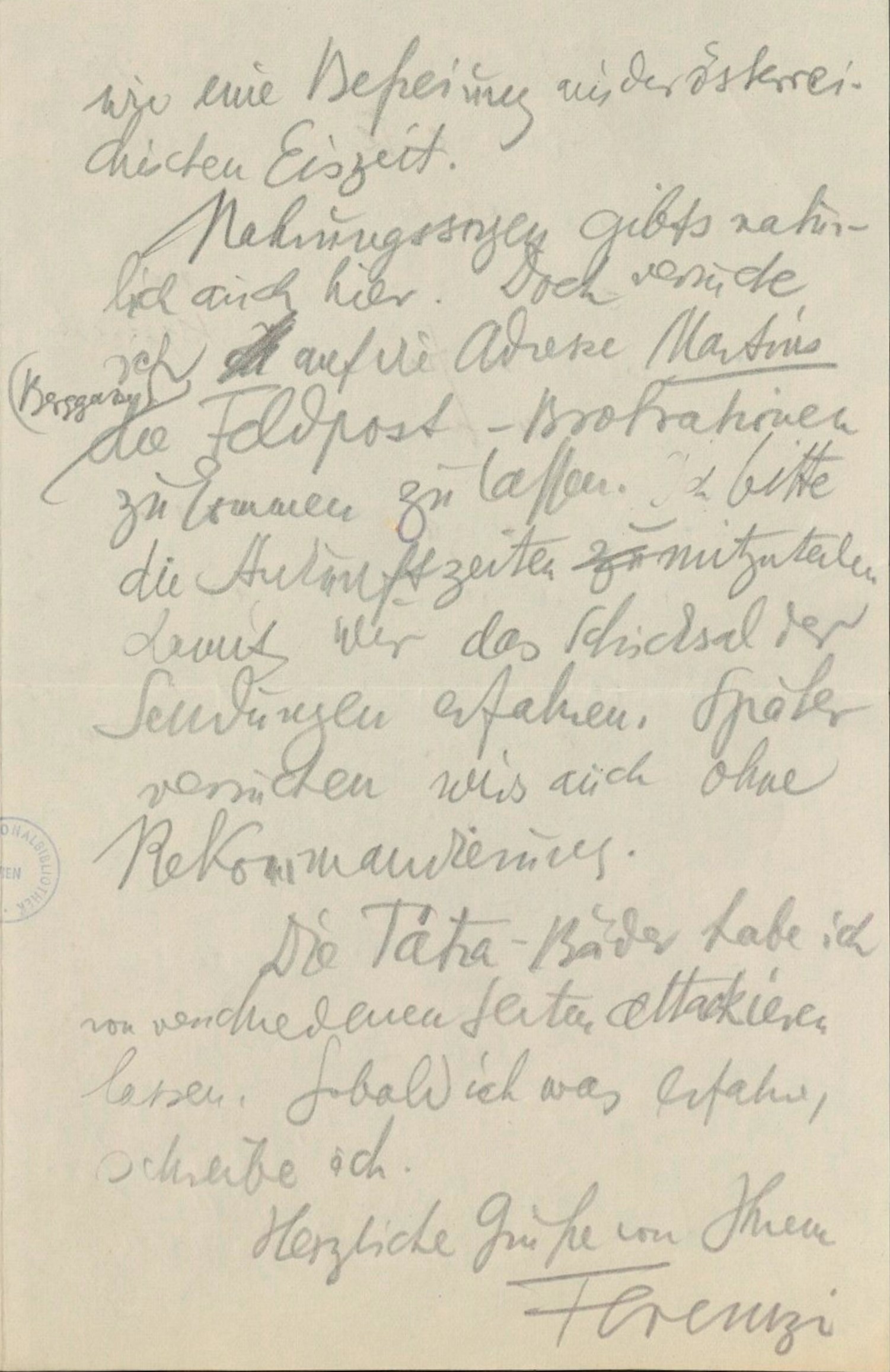 Freud, Sigmund, 1856-1939 [VerfasserIn] ; Ferenczi, Sándor, 1873-1933 [AdressatIn]