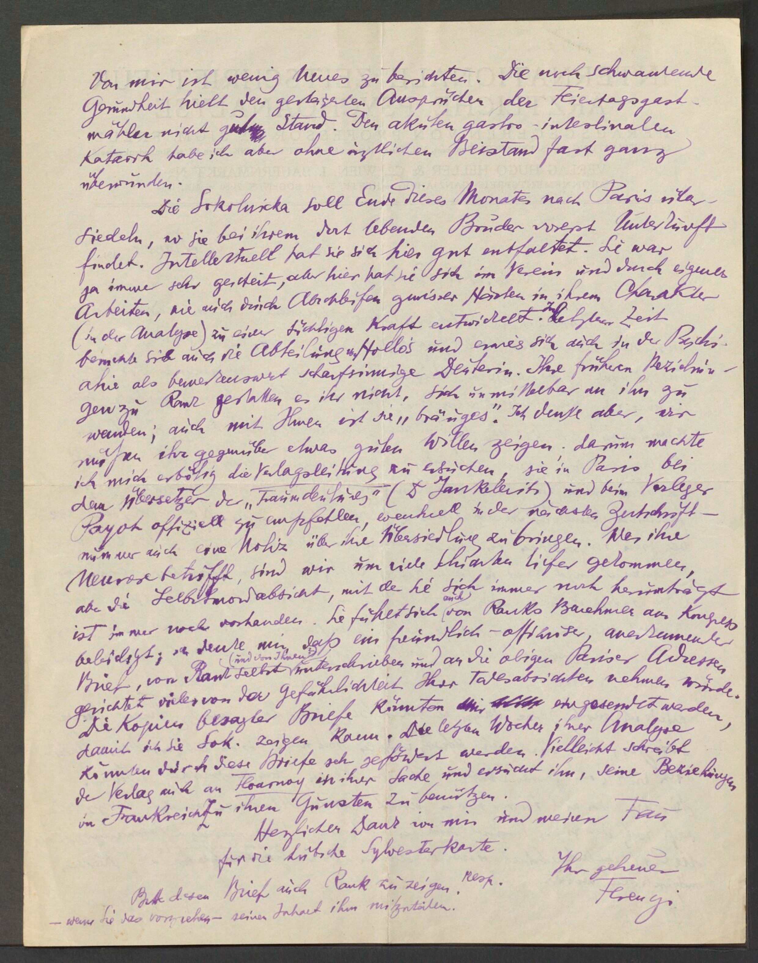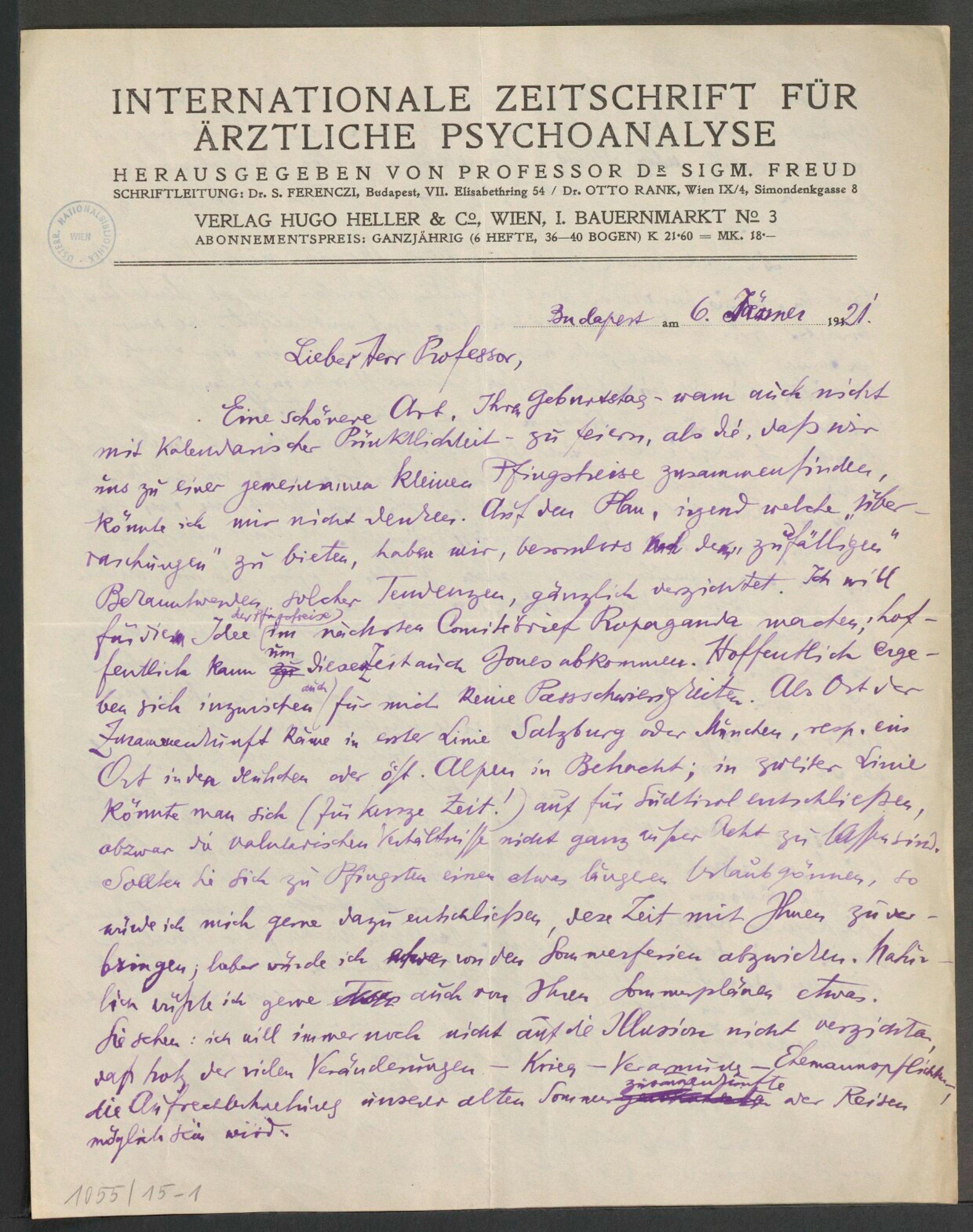 Freud, Sigmund, 1856-1939 [VerfasserIn] ; Ferenczi, Sándor, 1873-1933 [AdressatIn]