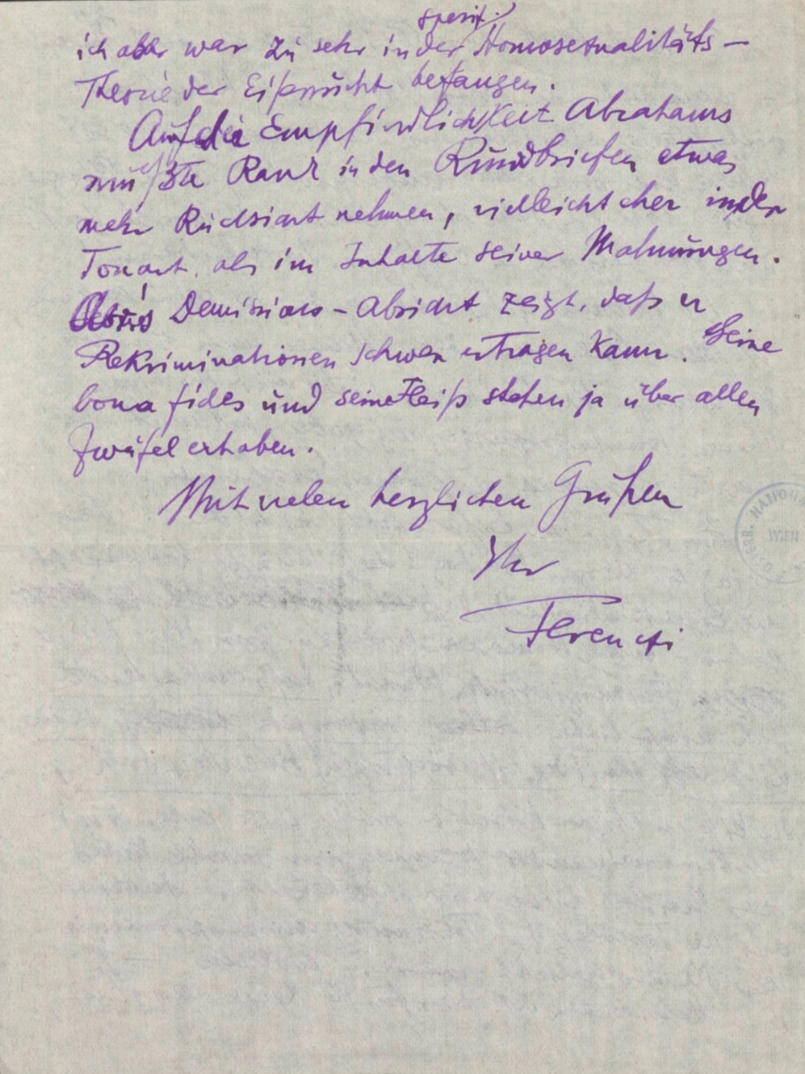 Freud, Sigmund, 1856-1939 [VerfasserIn] ; Ferenczi, Sándor, 1873-1933 [AdressatIn]