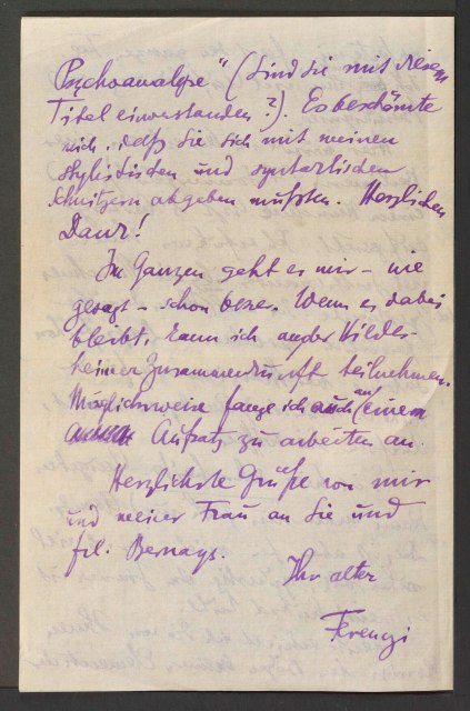 Freud, Sigmund, 1856-1939 [VerfasserIn] ; Ferenczi, Sándor, 1873-1933 [AdressatIn]