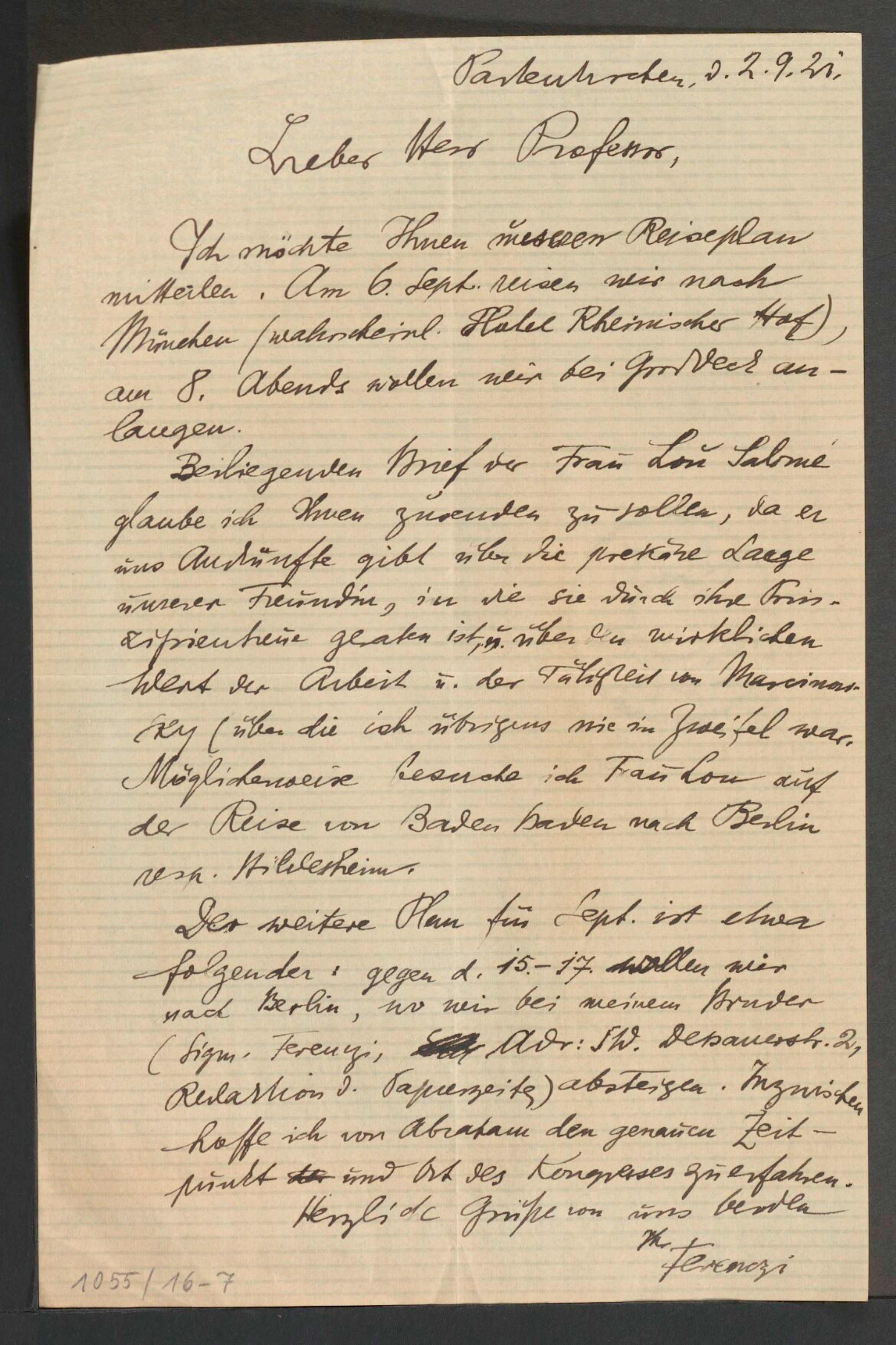 Freud, Sigmund, 1856-1939 [VerfasserIn] ; Ferenczi, Sándor, 1873-1933 [AdressatIn]
