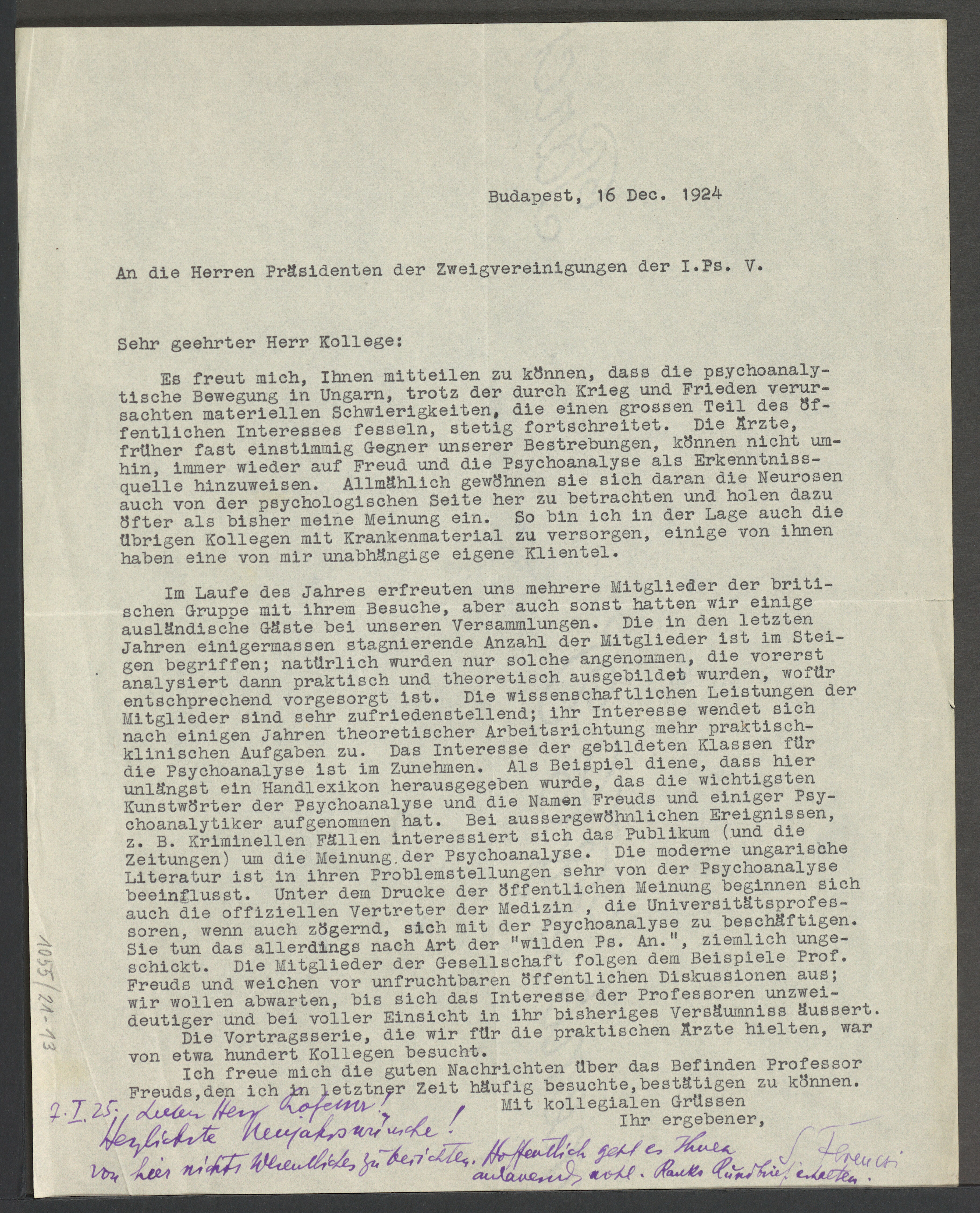 Handschriftl. Ergänzung zum Rundbrief vom 16.12.1924