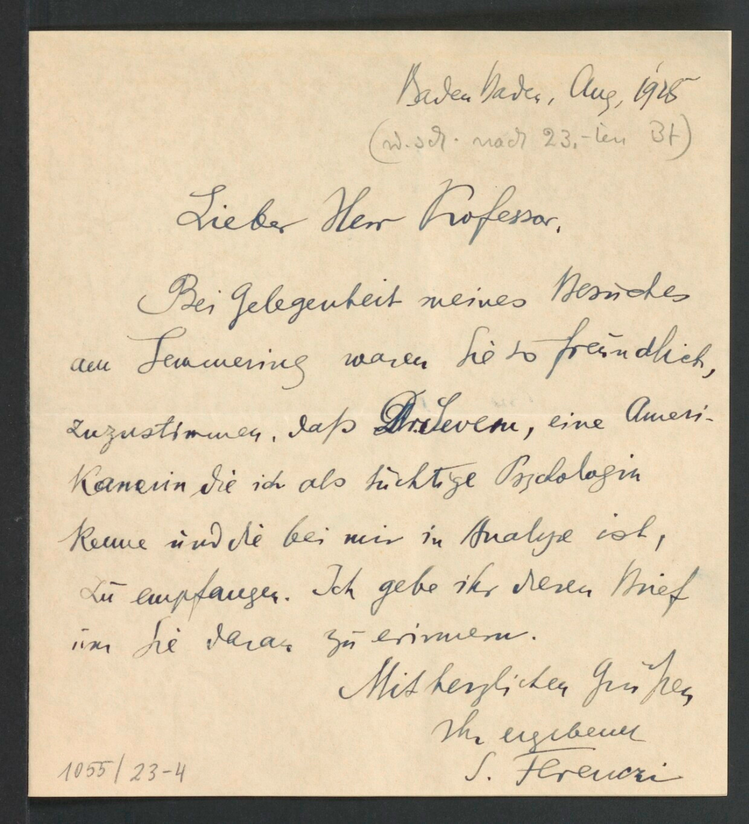 Freud, Sigmund, 1856-1939 [VerfasserIn] ; Ferenczi, Sándor, 1873-1933 [AdressatIn]