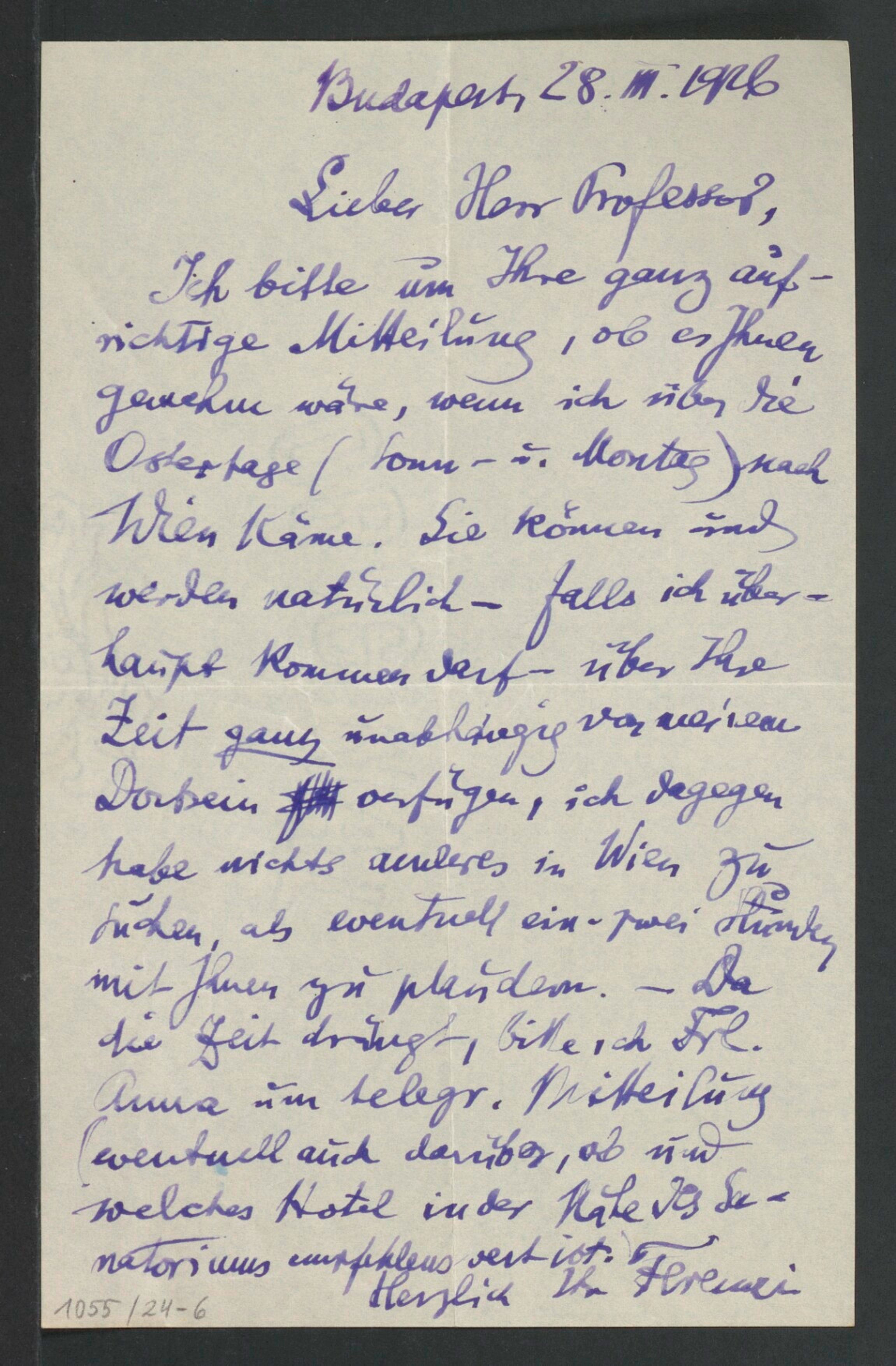 Freud, Sigmund, 1856-1939 [VerfasserIn] ; Ferenczi, Sándor, 1873-1933 [AdressatIn]
