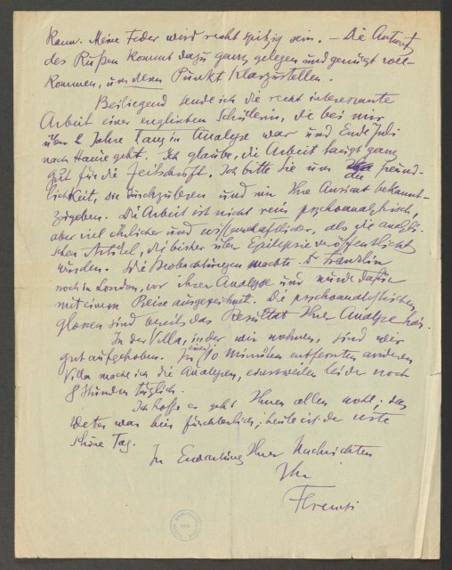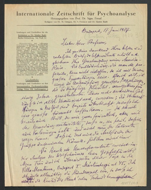 Freud, Sigmund, 1856-1939 [VerfasserIn] ; Ferenczi, Sándor, 1873-1933 [AdressatIn]