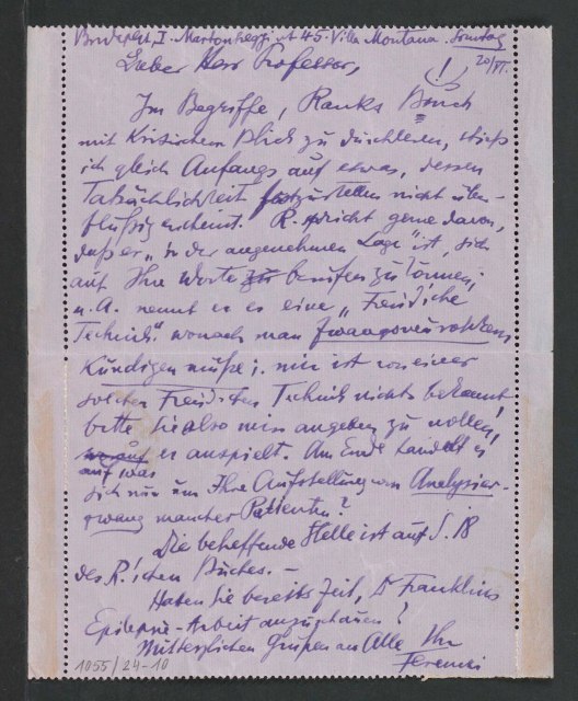 Freud, Sigmund, 1856-1939 [VerfasserIn] ; Ferenczi, Sándor, 1873-1933 [AdressatIn]