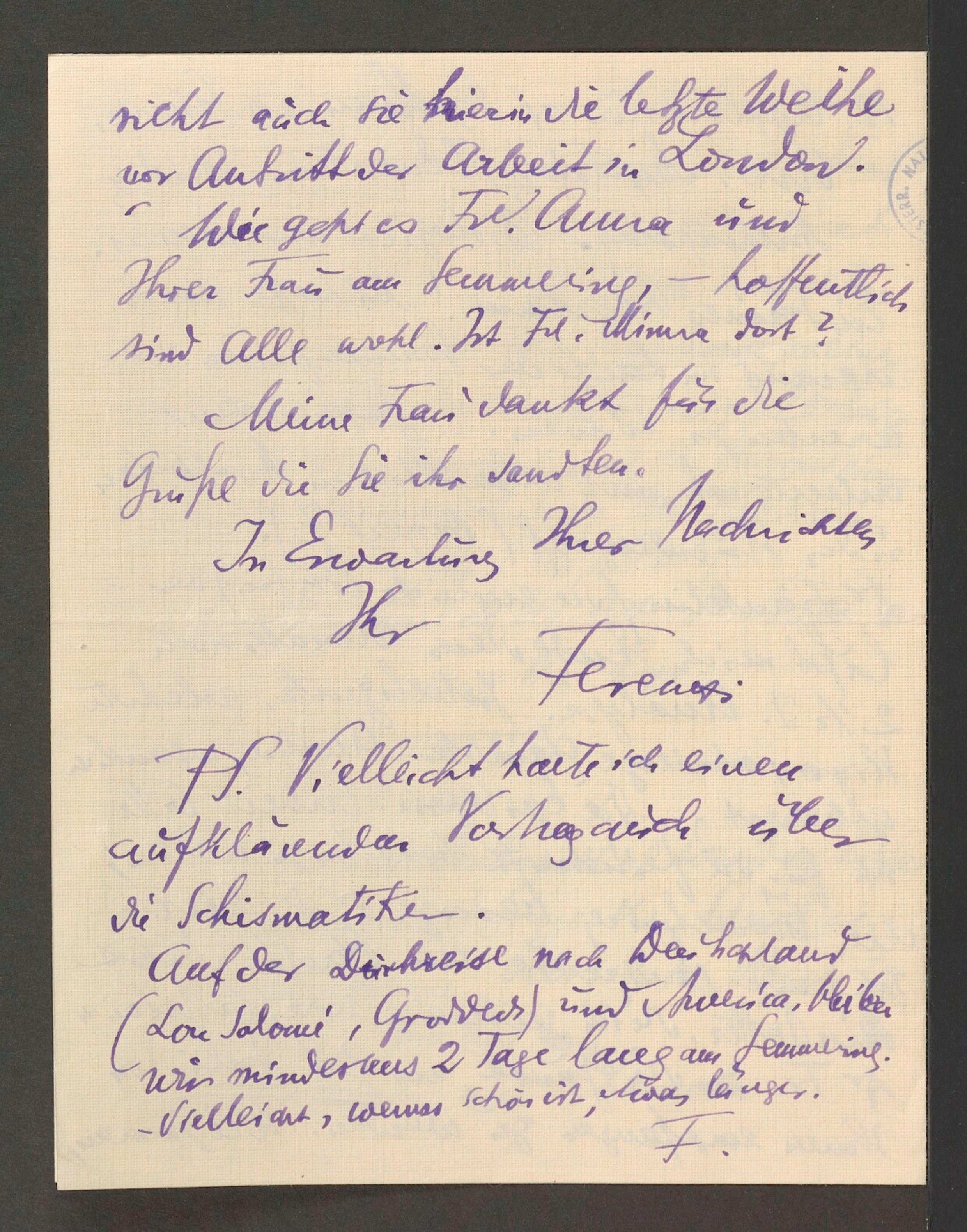 Freud, Sigmund, 1856-1939 [VerfasserIn] ; Ferenczi, Sándor, 1873-1933 [AdressatIn]