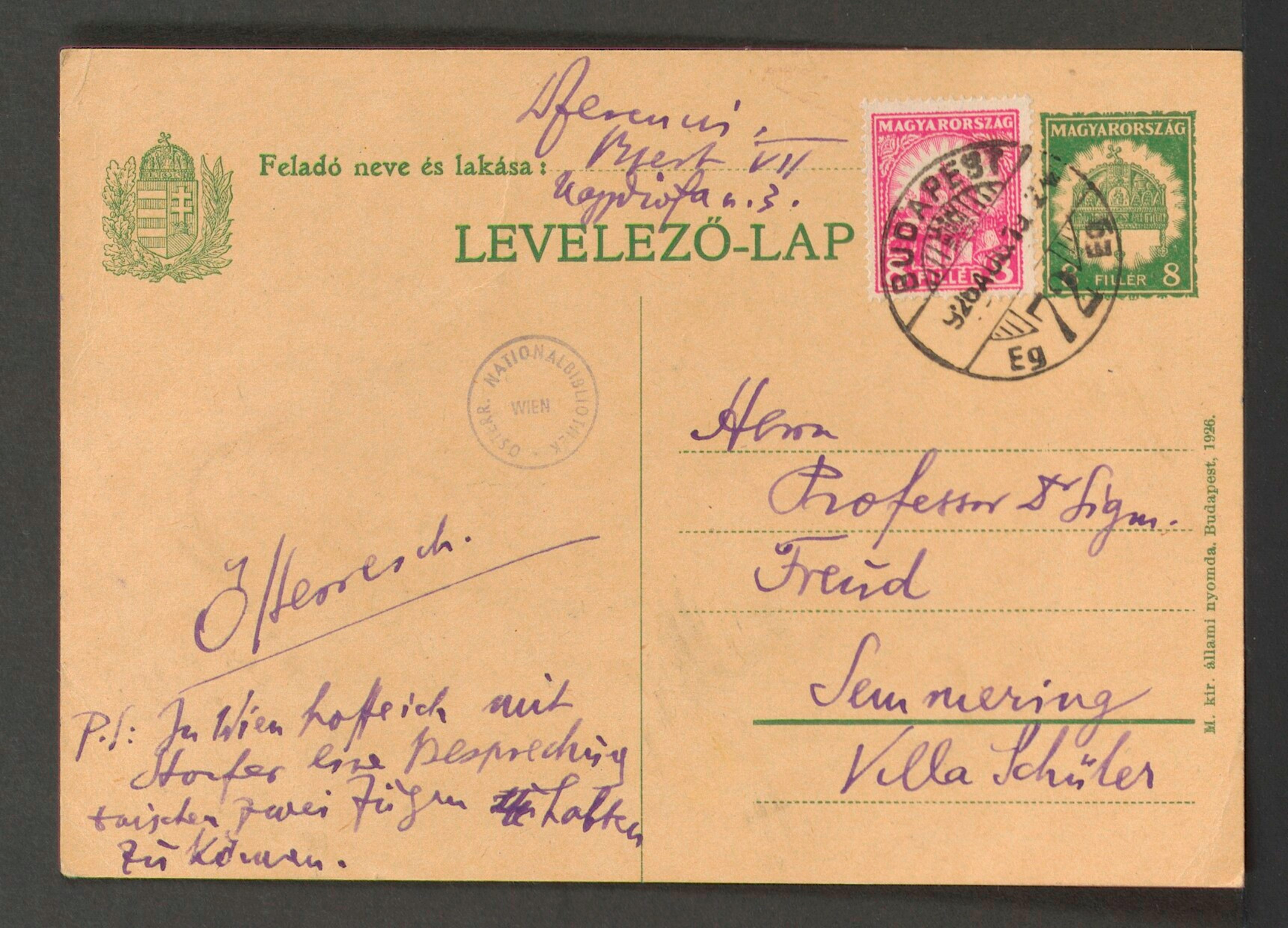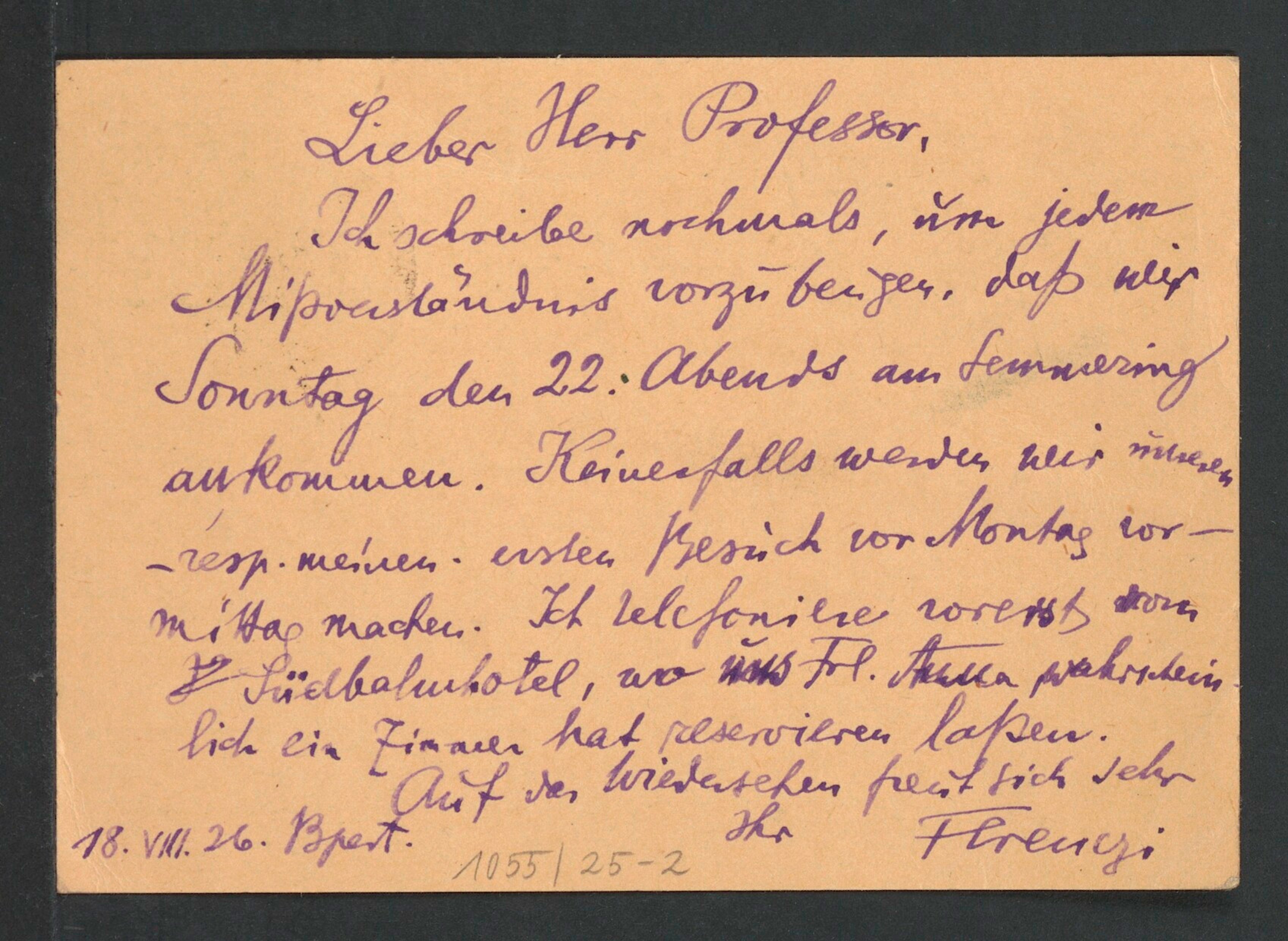 Freud, Sigmund, 1856-1939 [VerfasserIn] ; Ferenczi, Sándor, 1873-1933 [AdressatIn]