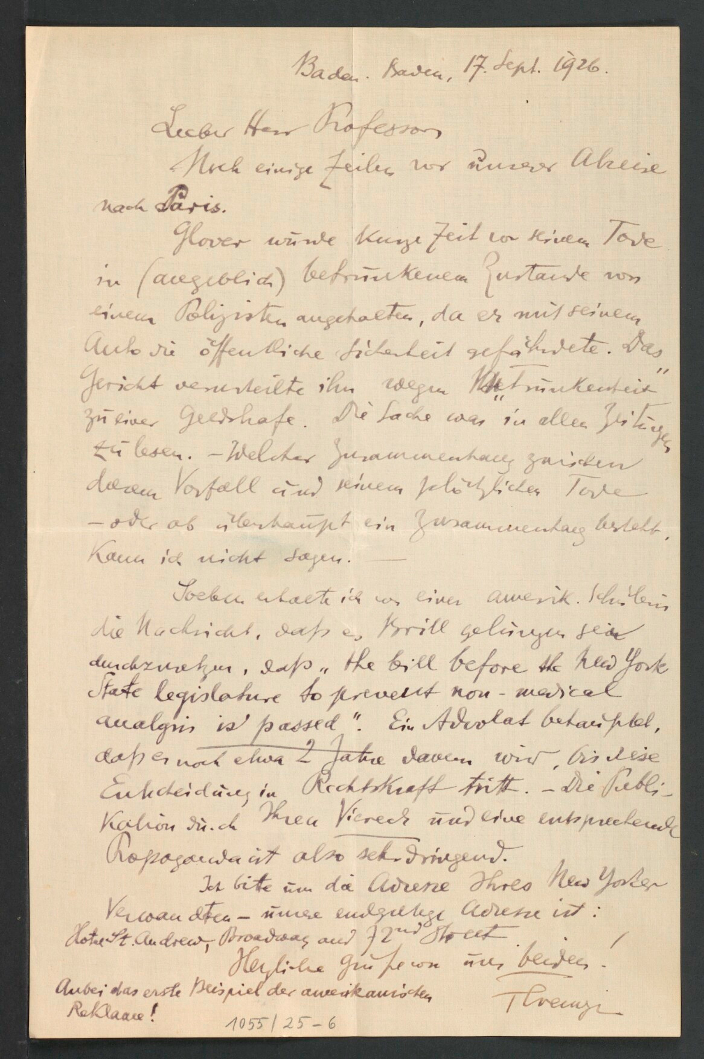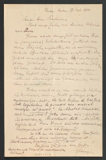 Freud, Sigmund, 1856-1939 [VerfasserIn] ; Ferenczi, Sándor, 1873-1933 [AdressatIn]