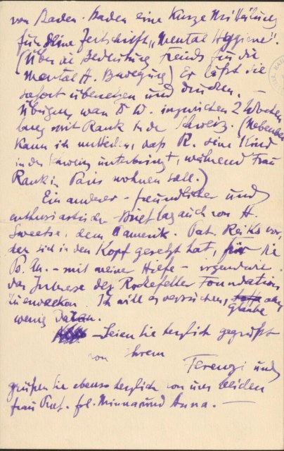 Freud, Sigmund, 1856-1939 [VerfasserIn] ; Ferenczi, Sándor, 1873-1933 [AdressatIn]