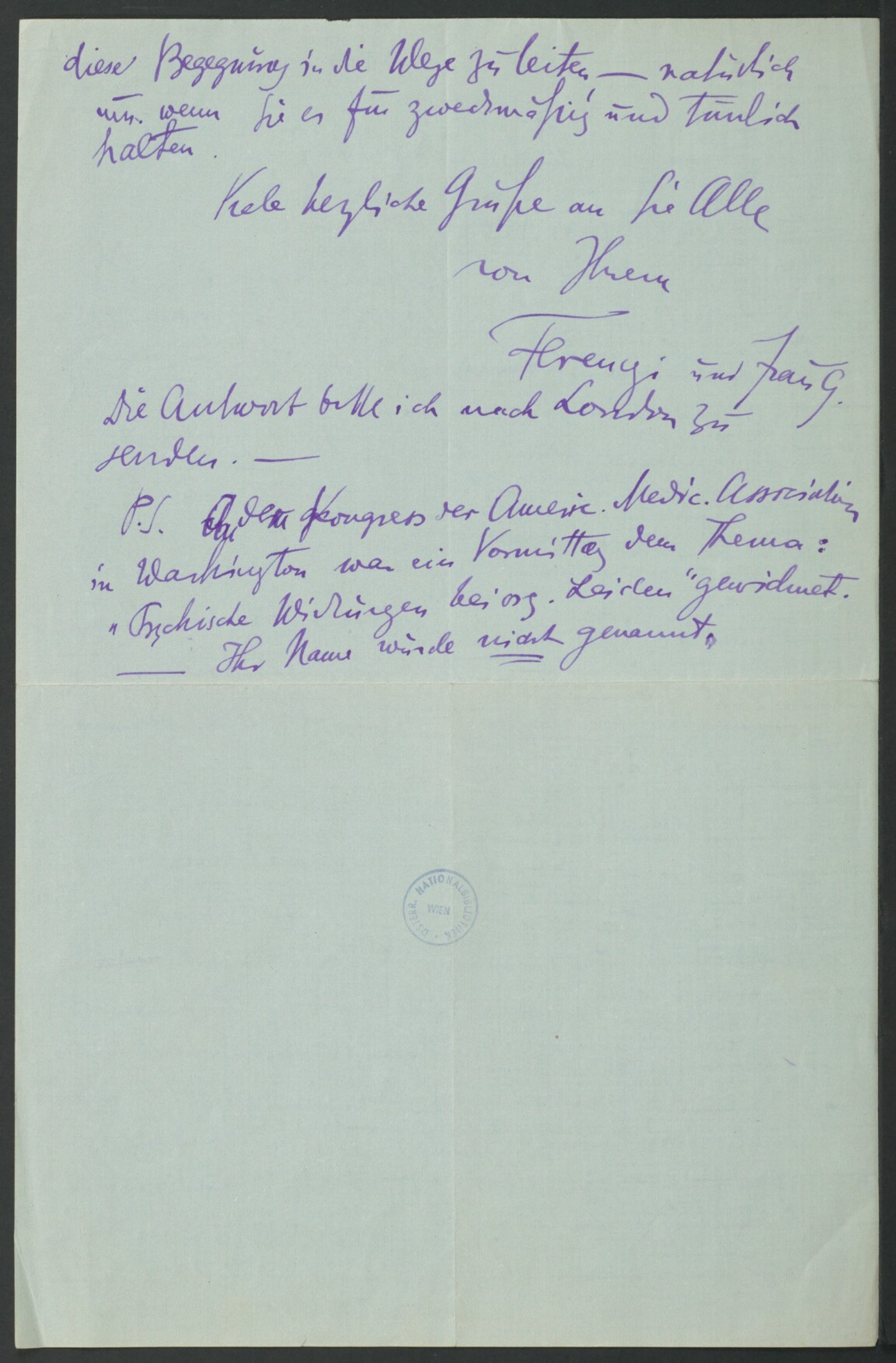 Freud, Sigmund, 1856-1939 [VerfasserIn] ; Ferenczi, Sándor, 1873-1933 [AdressatIn]