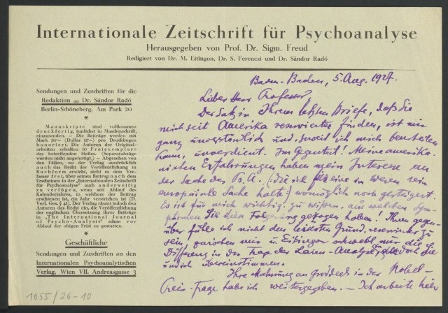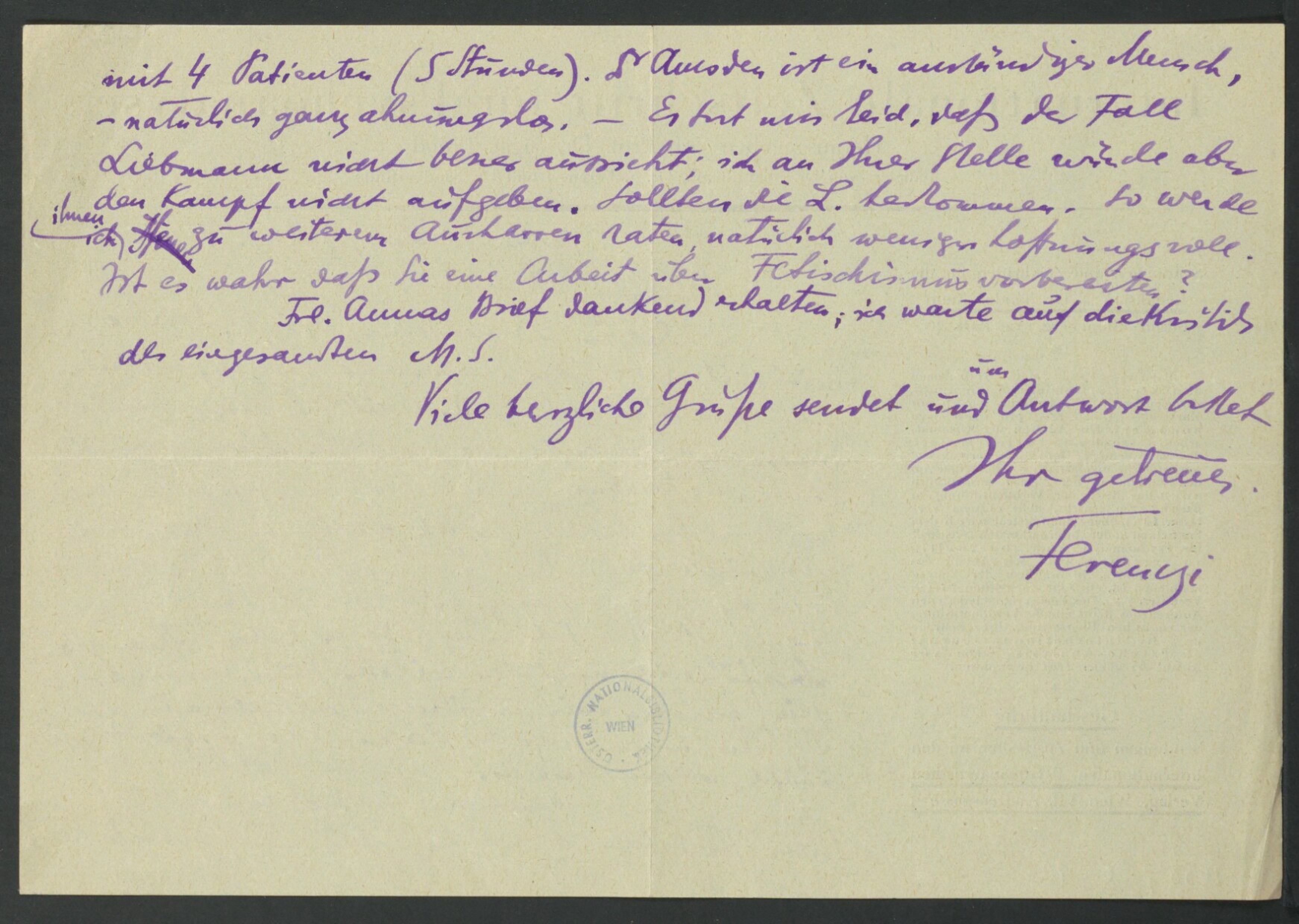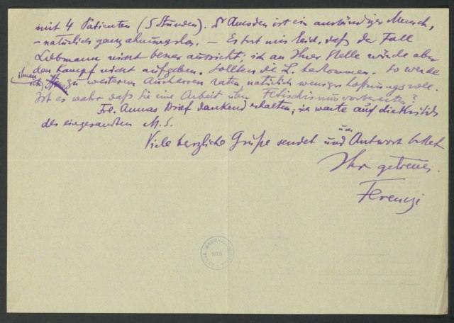 Freud, Sigmund, 1856-1939 [VerfasserIn] ; Ferenczi, Sándor, 1873-1933 [AdressatIn]