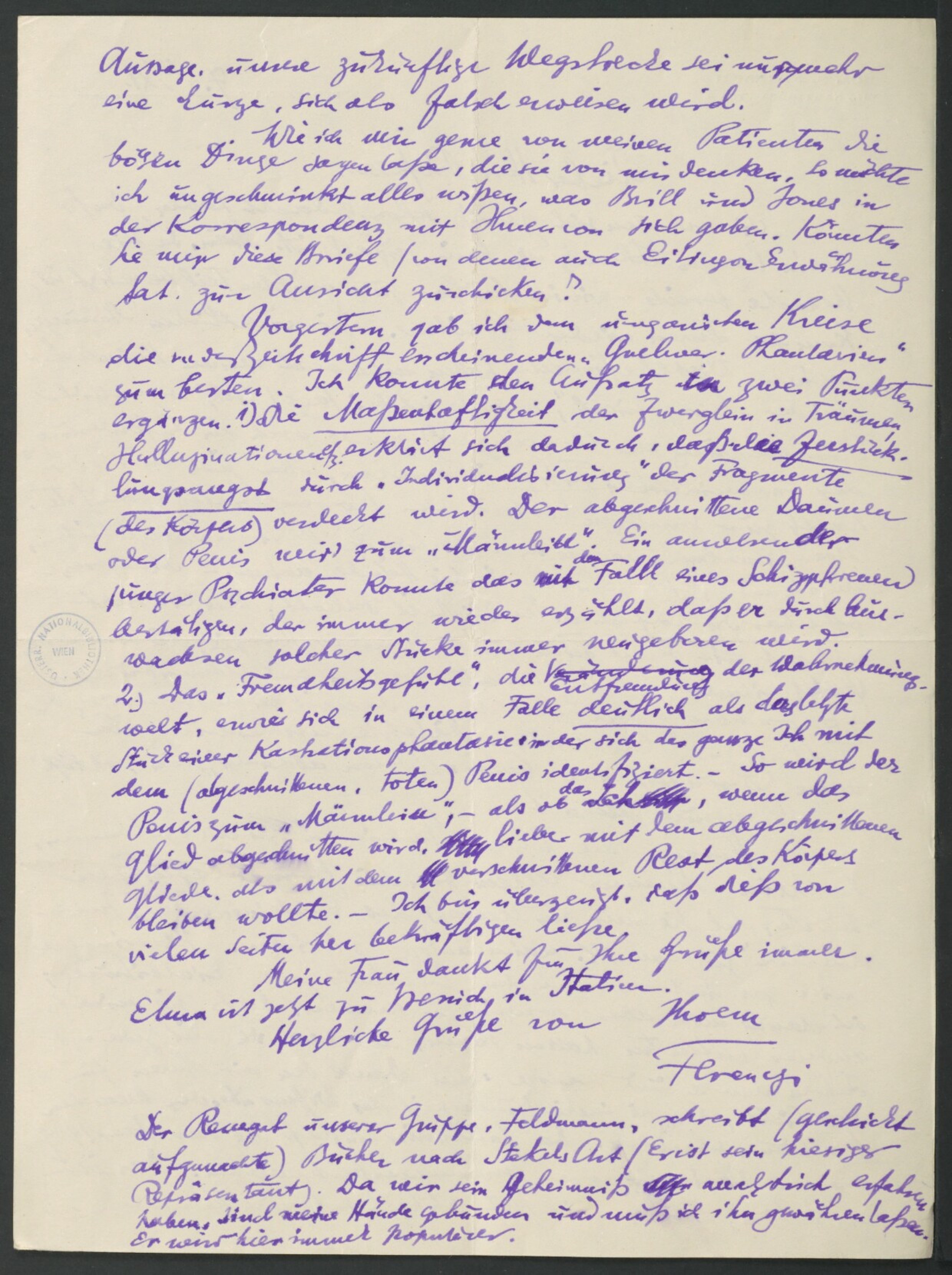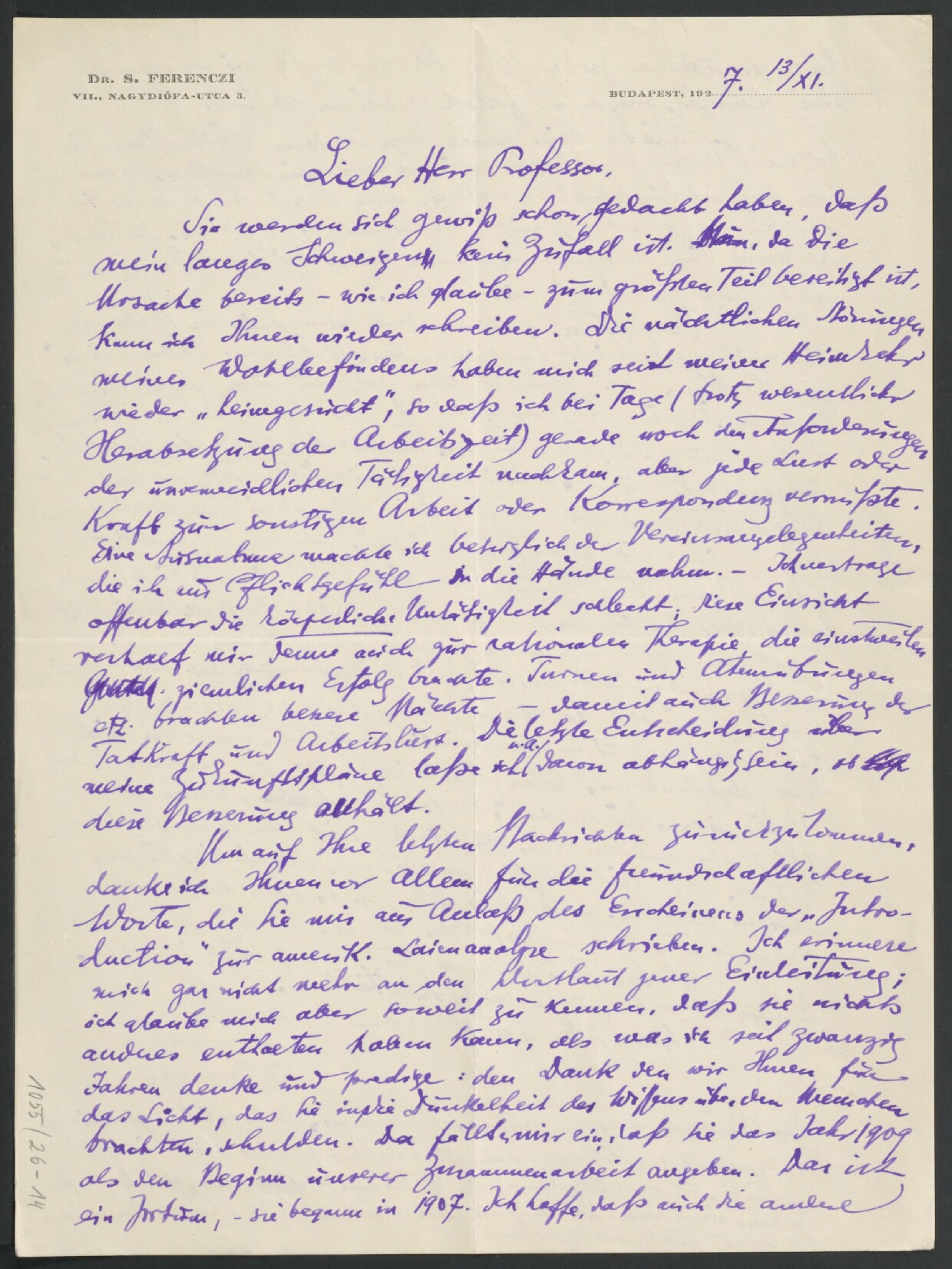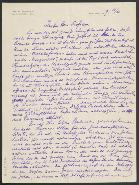 Freud, Sigmund, 1856-1939 [VerfasserIn] ; Ferenczi, Sándor, 1873-1933 [AdressatIn]