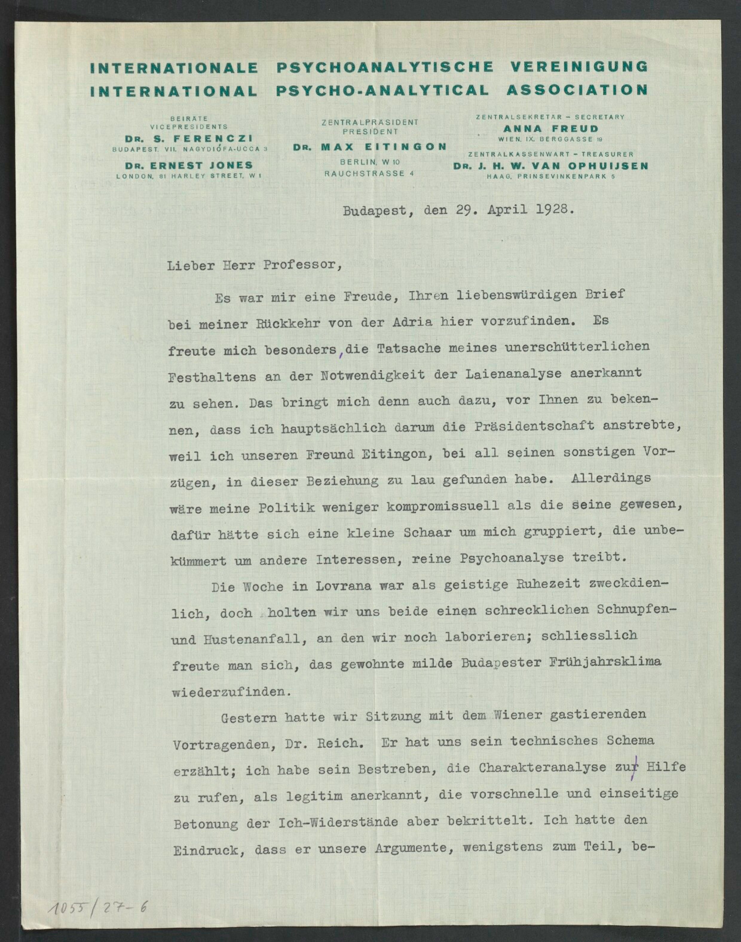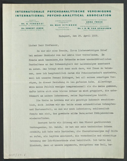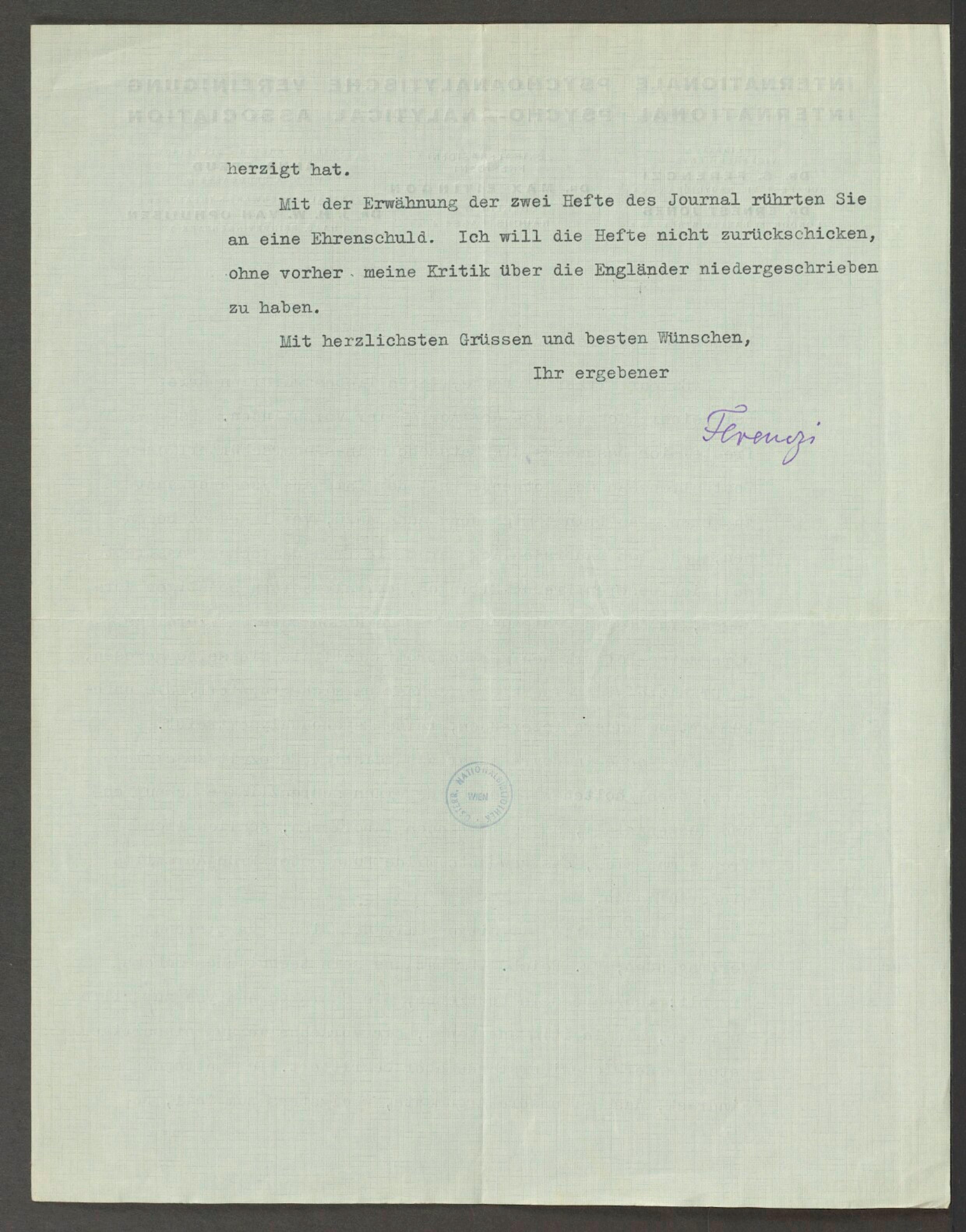 Freud, Sigmund, 1856-1939 [VerfasserIn] ; Ferenczi, Sándor, 1873-1933 [AdressatIn]