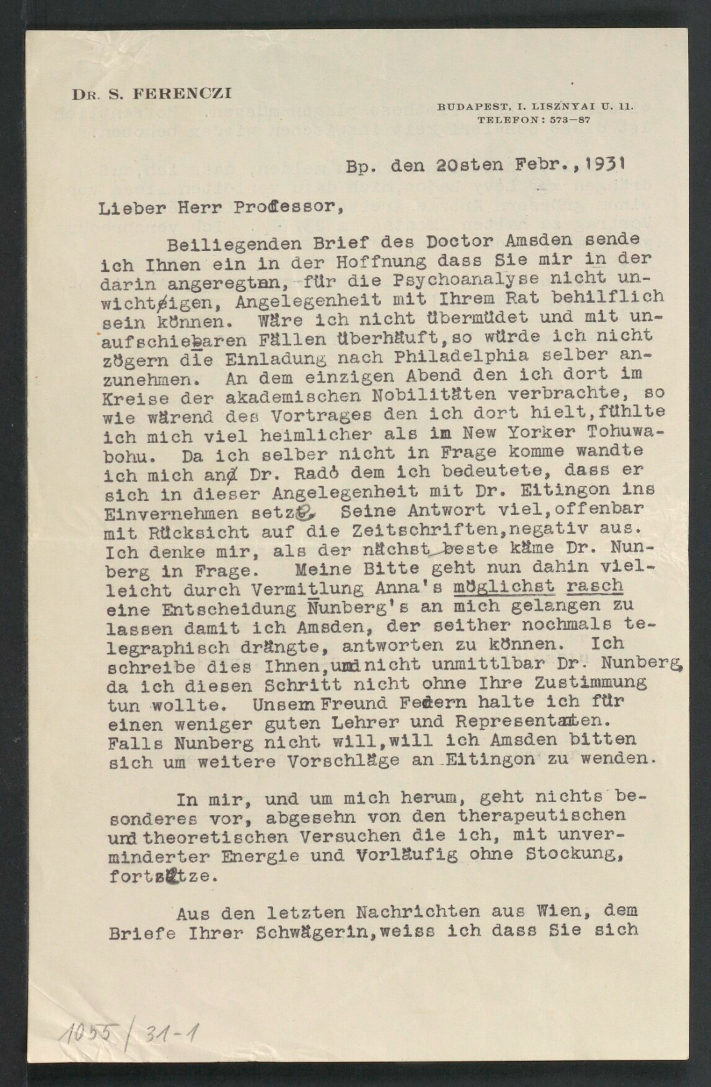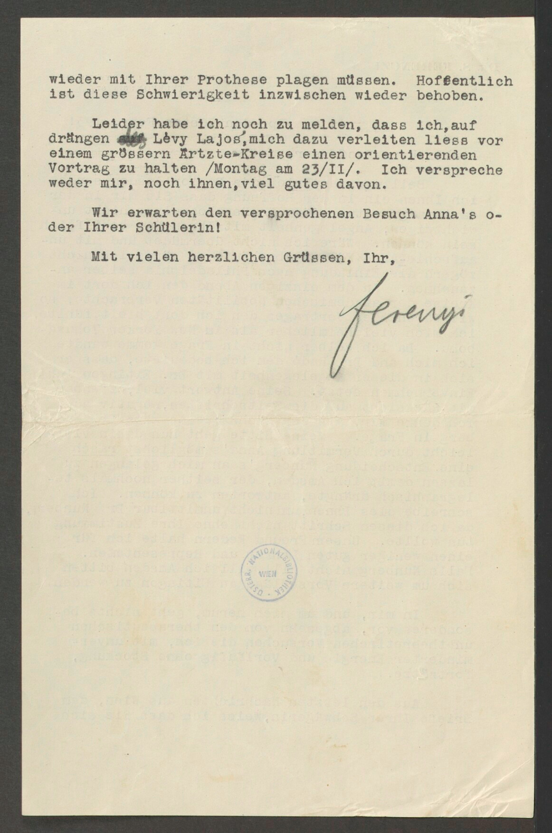 Freud, Sigmund, 1856-1939 [VerfasserIn] ; Ferenczi, Sándor, 1873-1933 [AdressatIn]