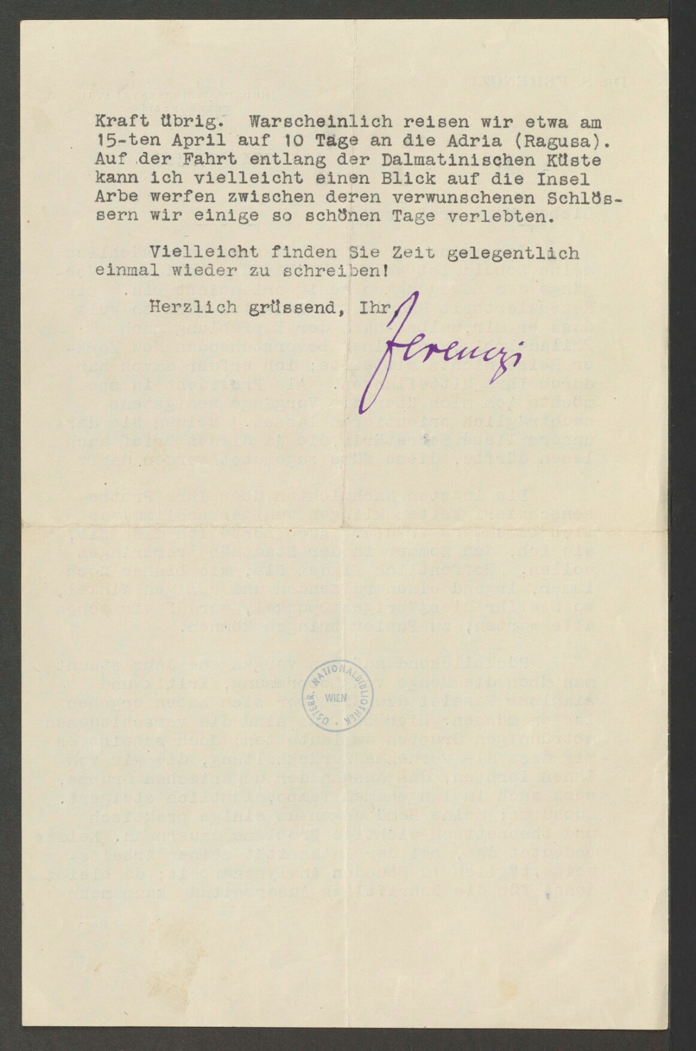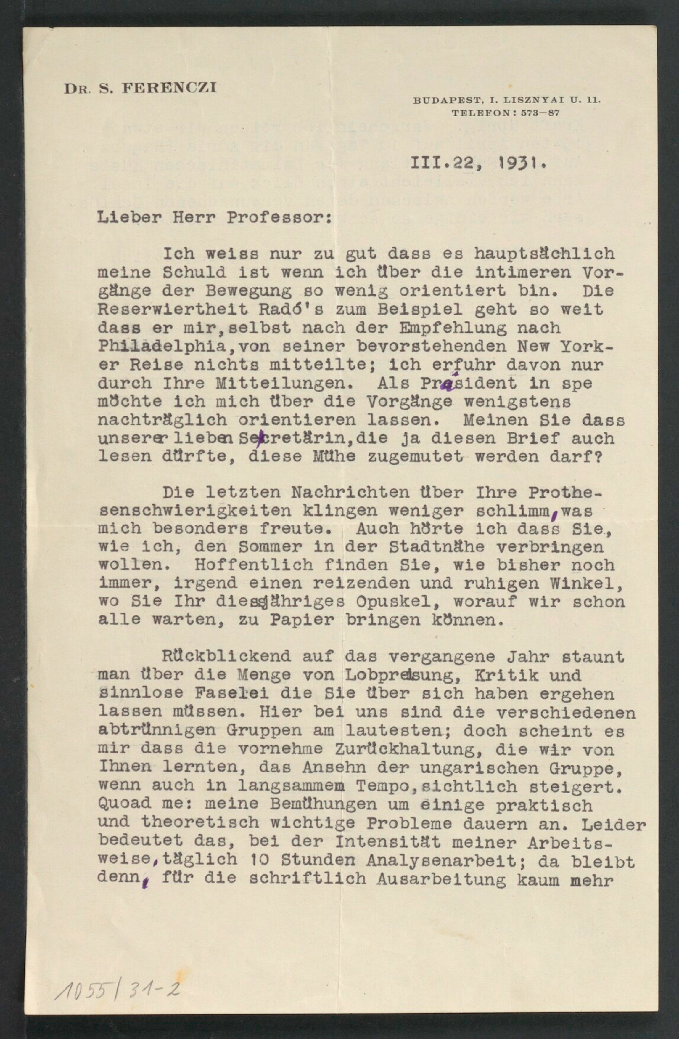 Freud, Sigmund, 1856-1939 [VerfasserIn] ; Ferenczi, Sándor, 1873-1933 [AdressatIn]