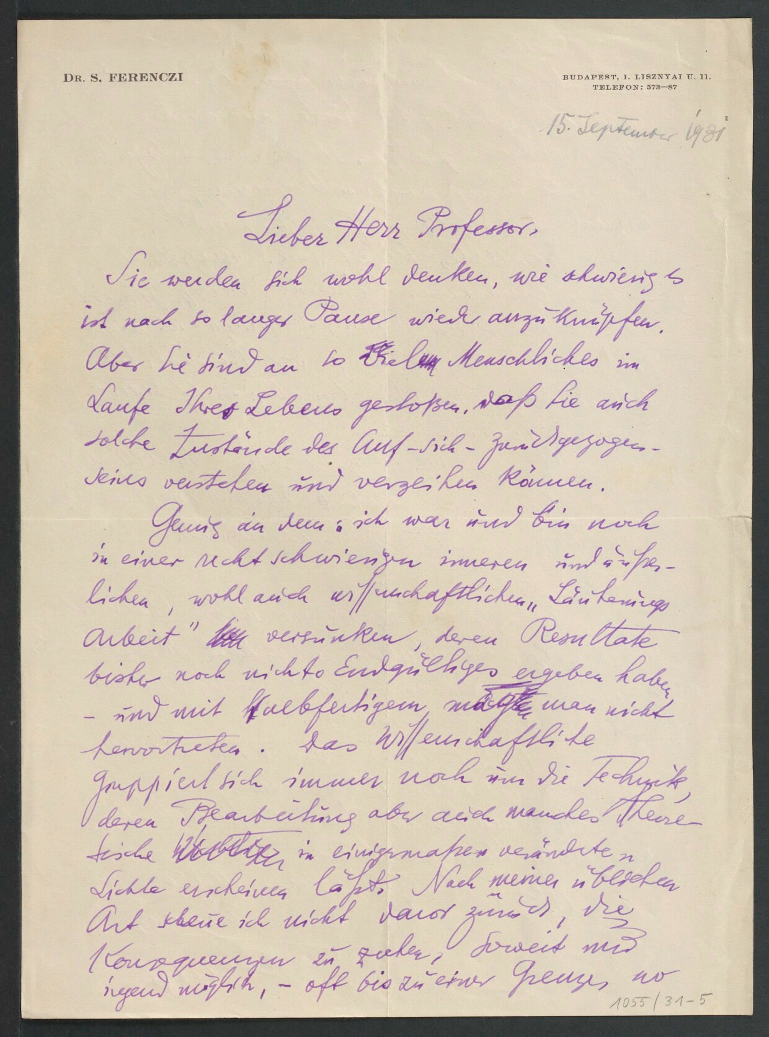 Freud, Sigmund, 1856-1939 [VerfasserIn] ; Ferenczi, Sándor, 1873-1933 [AdressatIn]
