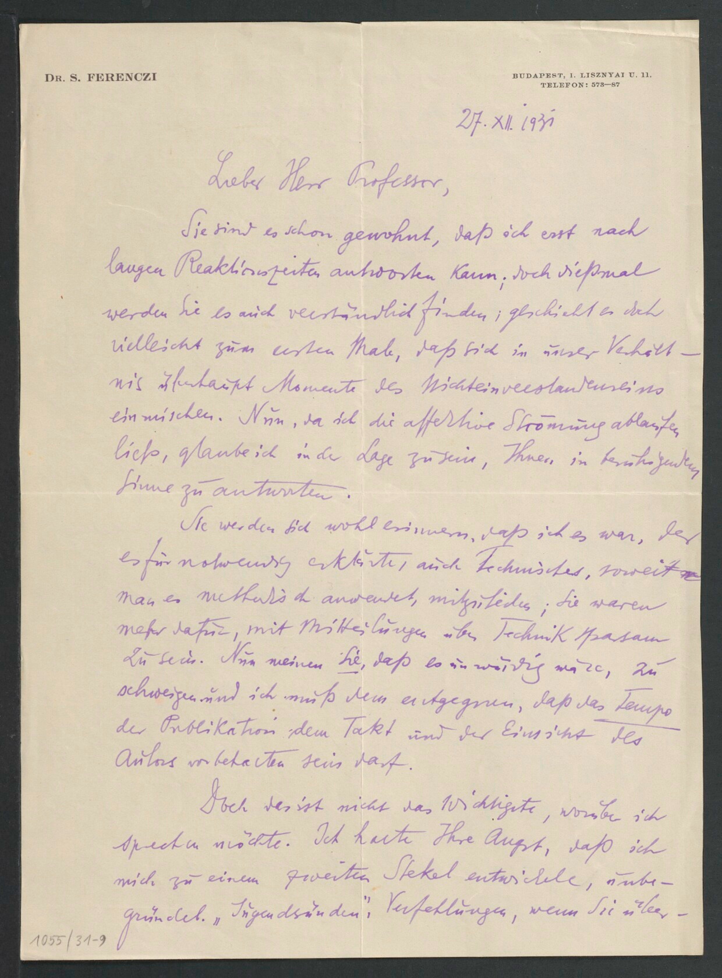 Freud, Sigmund, 1856-1939 [VerfasserIn] ; Ferenczi, Sándor, 1873-1933 [AdressatIn]