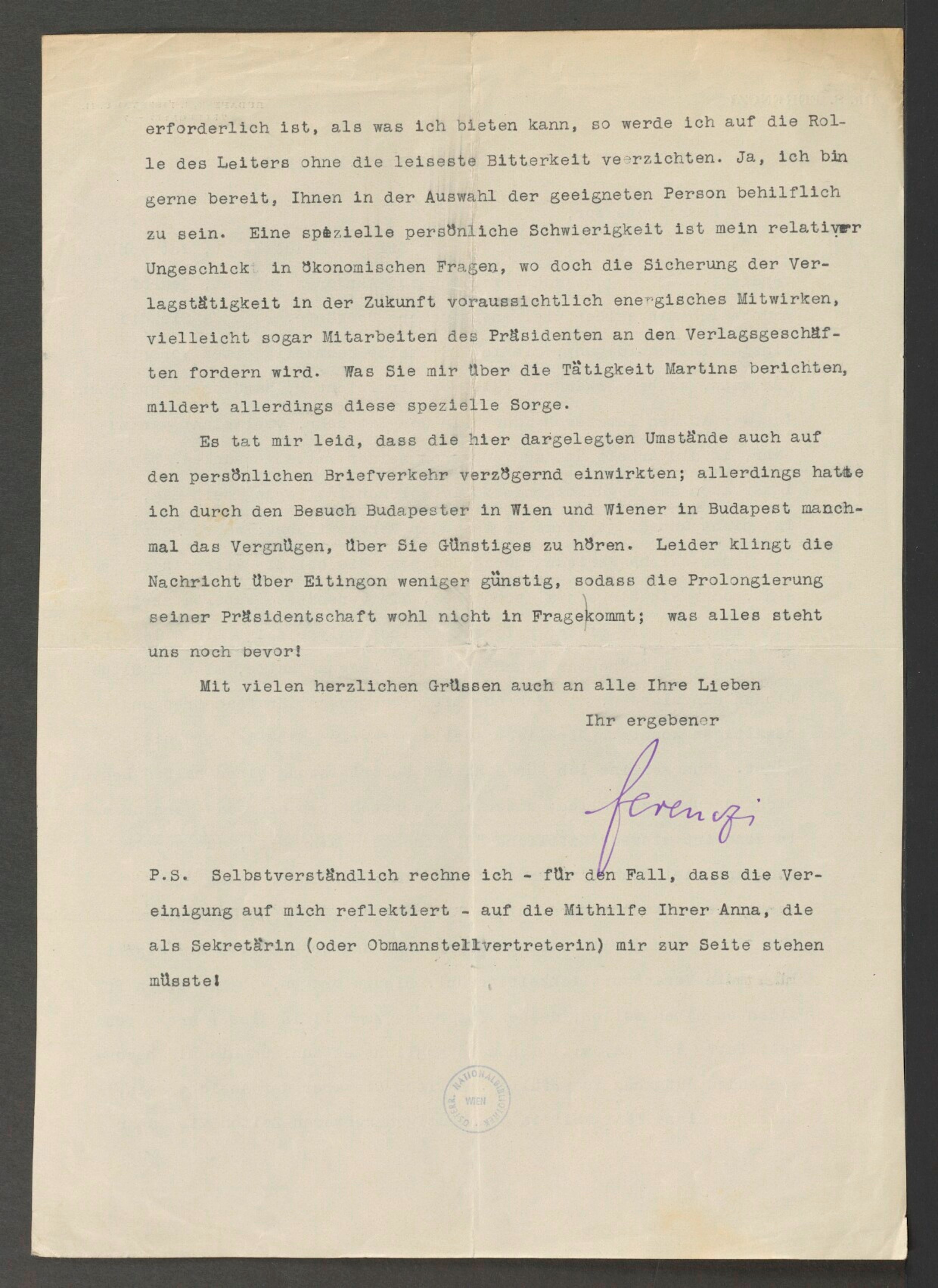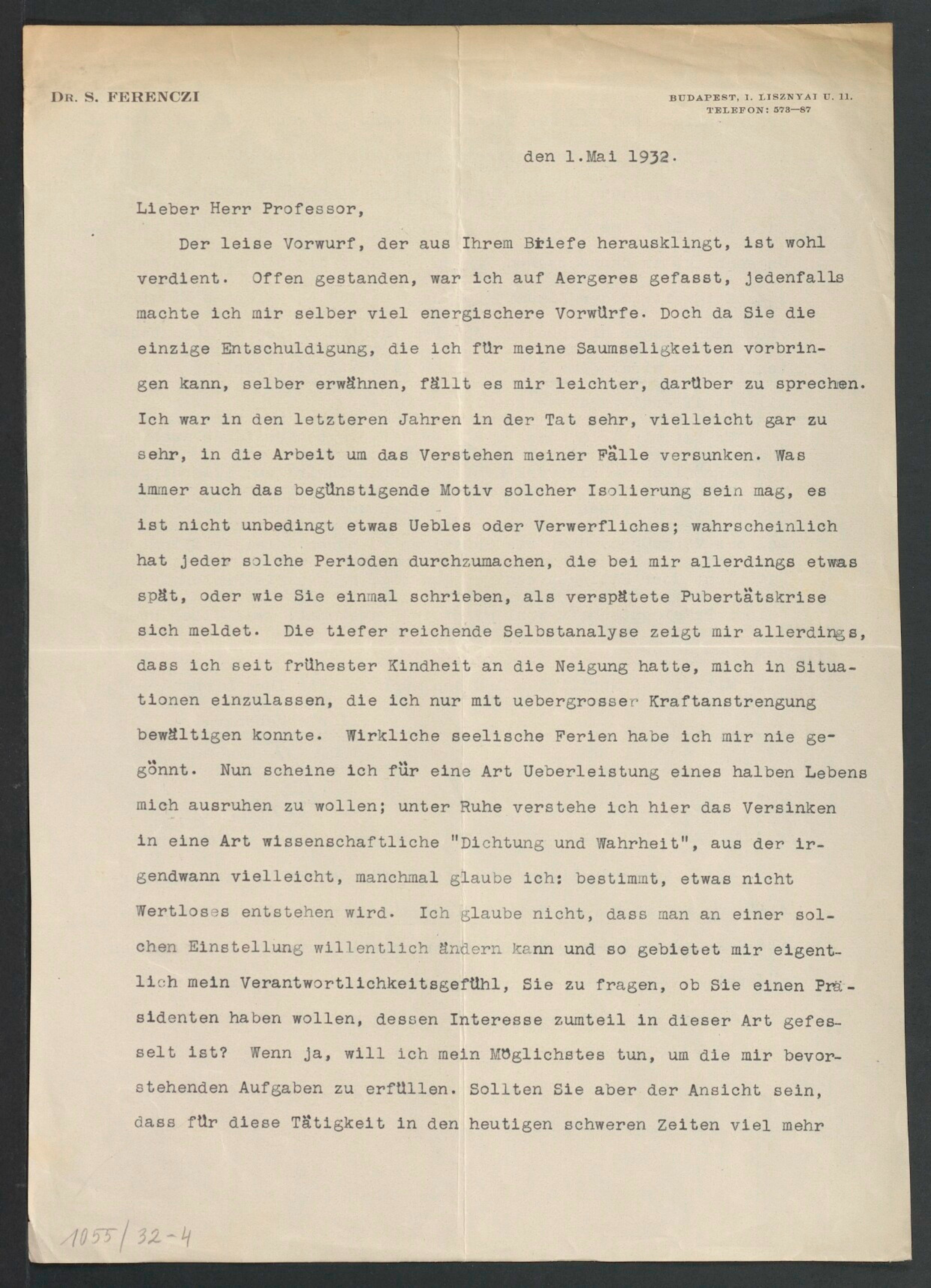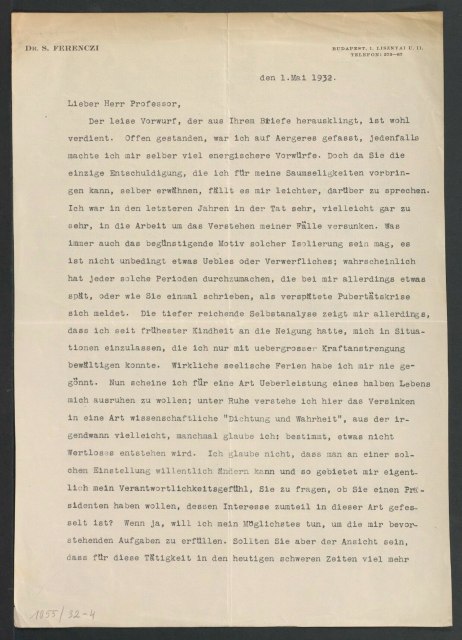 Freud, Sigmund, 1856-1939 [VerfasserIn] ; Ferenczi, Sándor, 1873-1933 [AdressatIn]