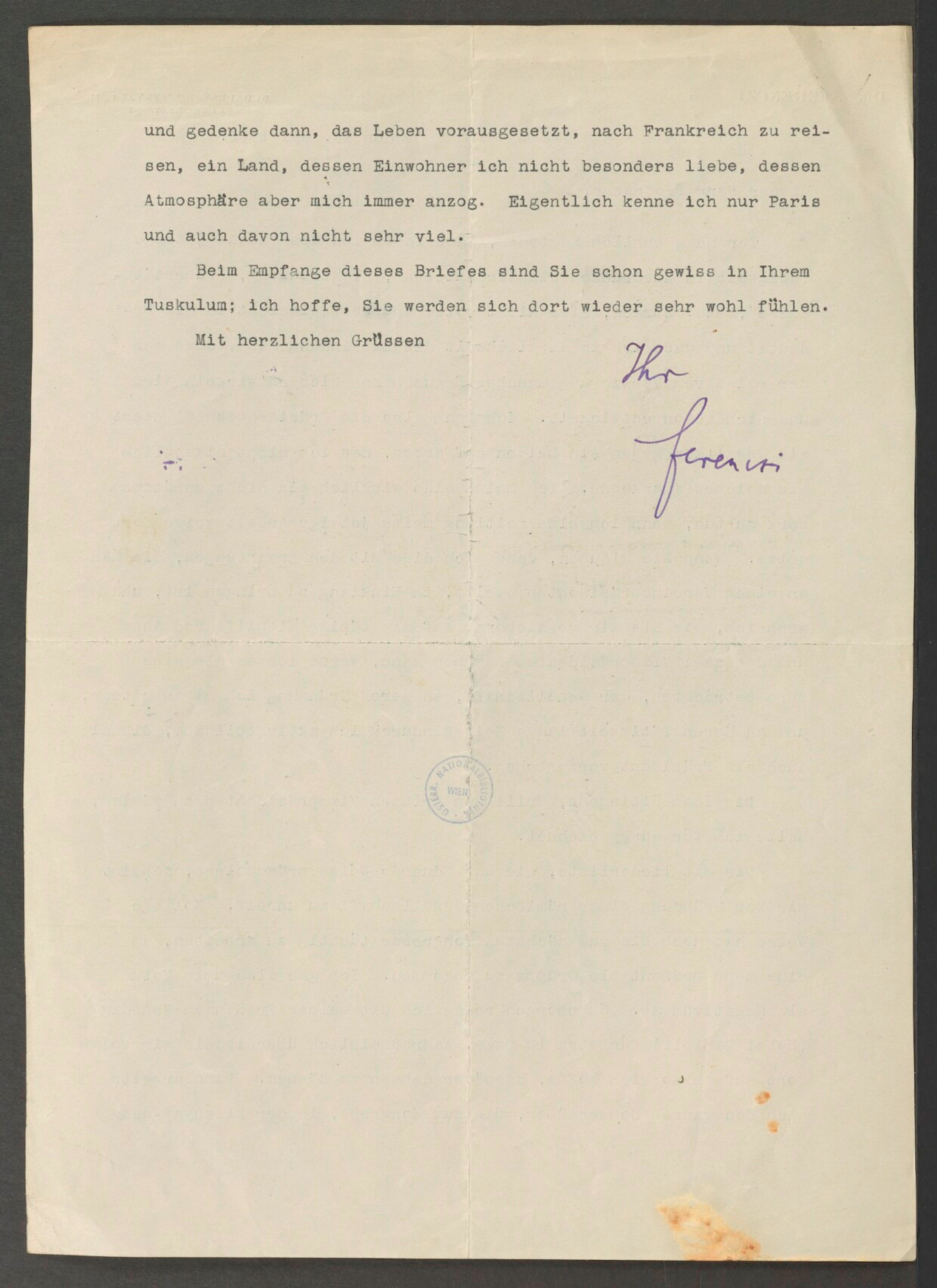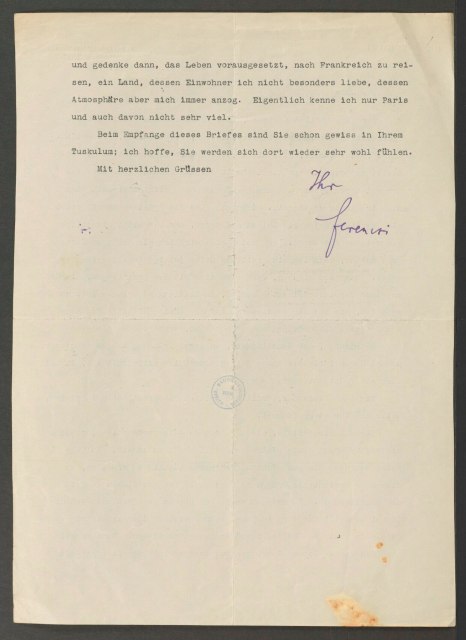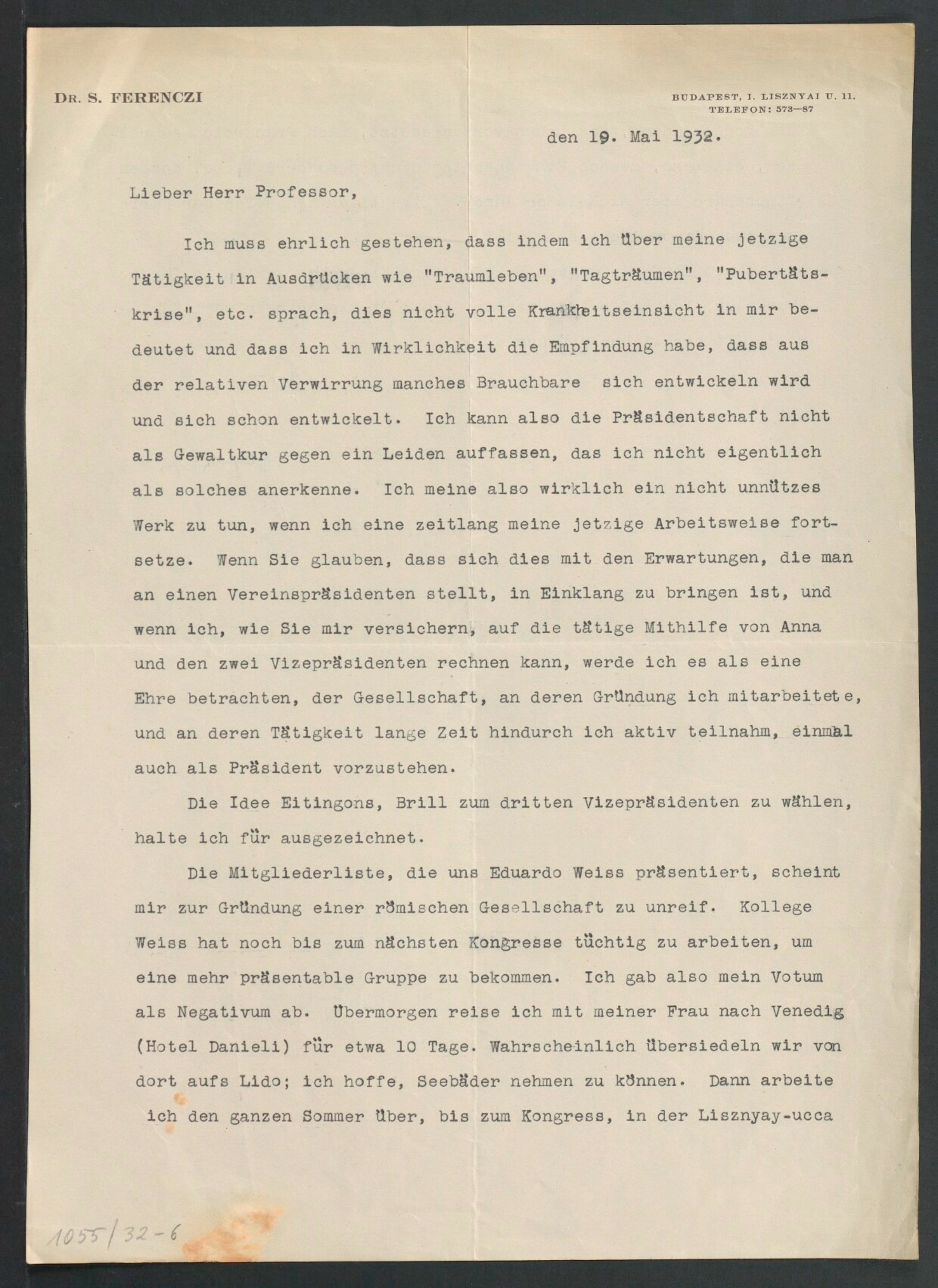 Freud, Sigmund, 1856-1939 [VerfasserIn] ; Ferenczi, Sándor, 1873-1933 [AdressatIn]