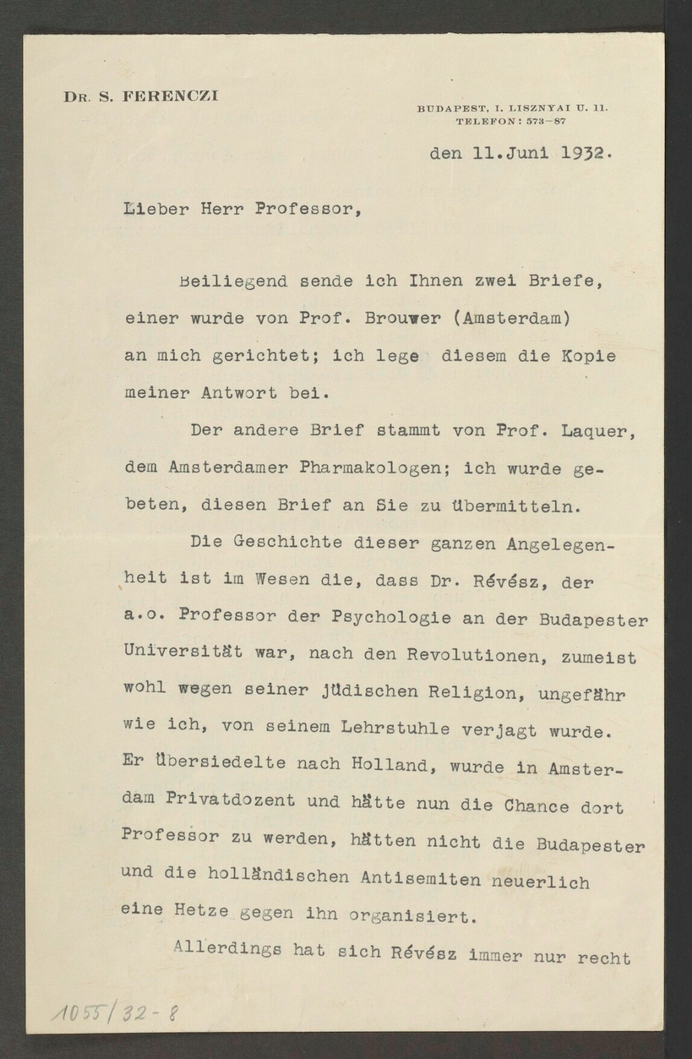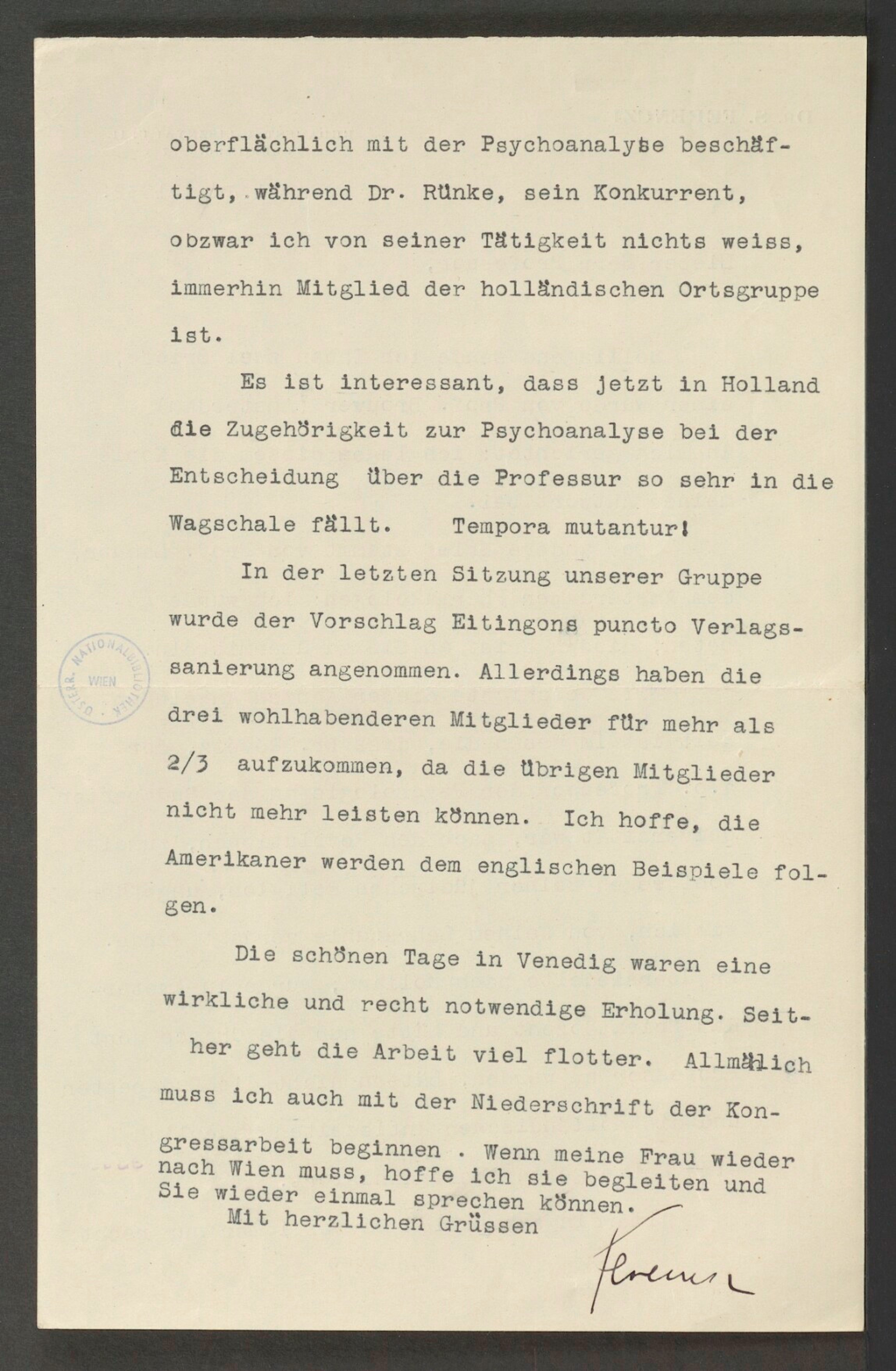 Freud, Sigmund, 1856-1939 [VerfasserIn] ; Ferenczi, Sándor, 1873-1933 [AdressatIn]