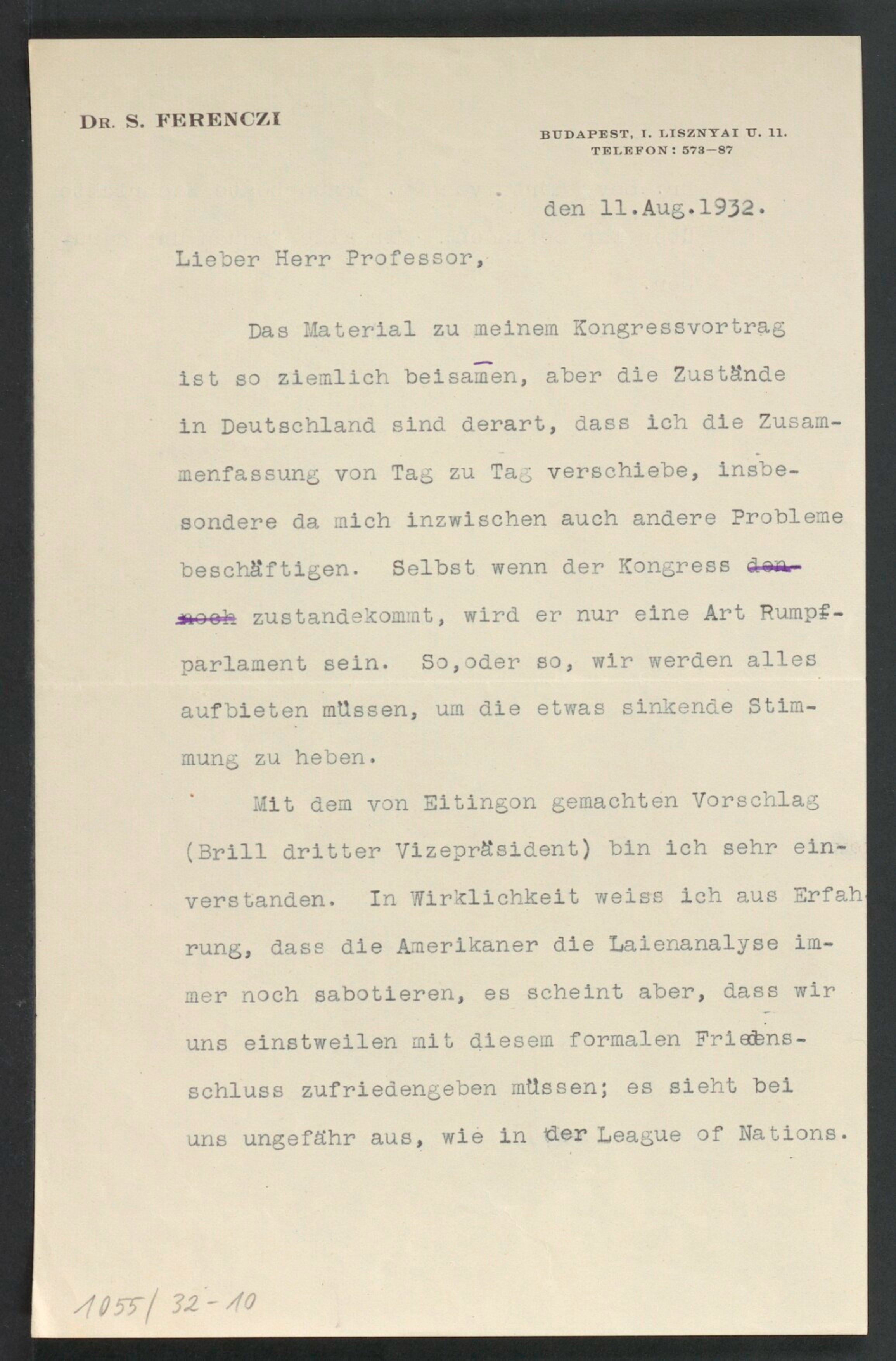 Freud, Sigmund, 1856-1939 [VerfasserIn] ; Ferenczi, Sándor, 1873-1933 [AdressatIn]