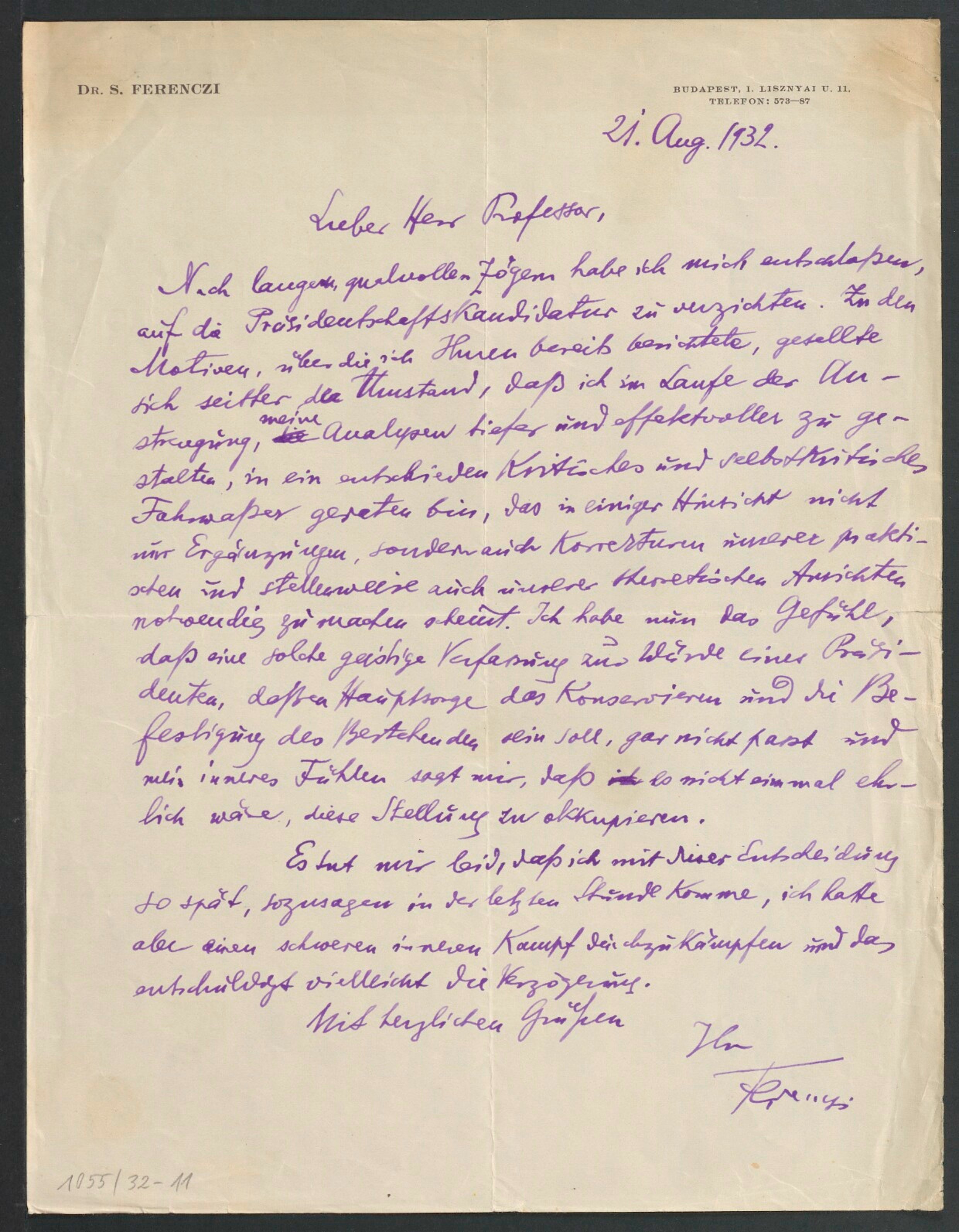 Freud, Sigmund, 1856-1939 [VerfasserIn] ; Ferenczi, Sándor, 1873-1933 [AdressatIn]