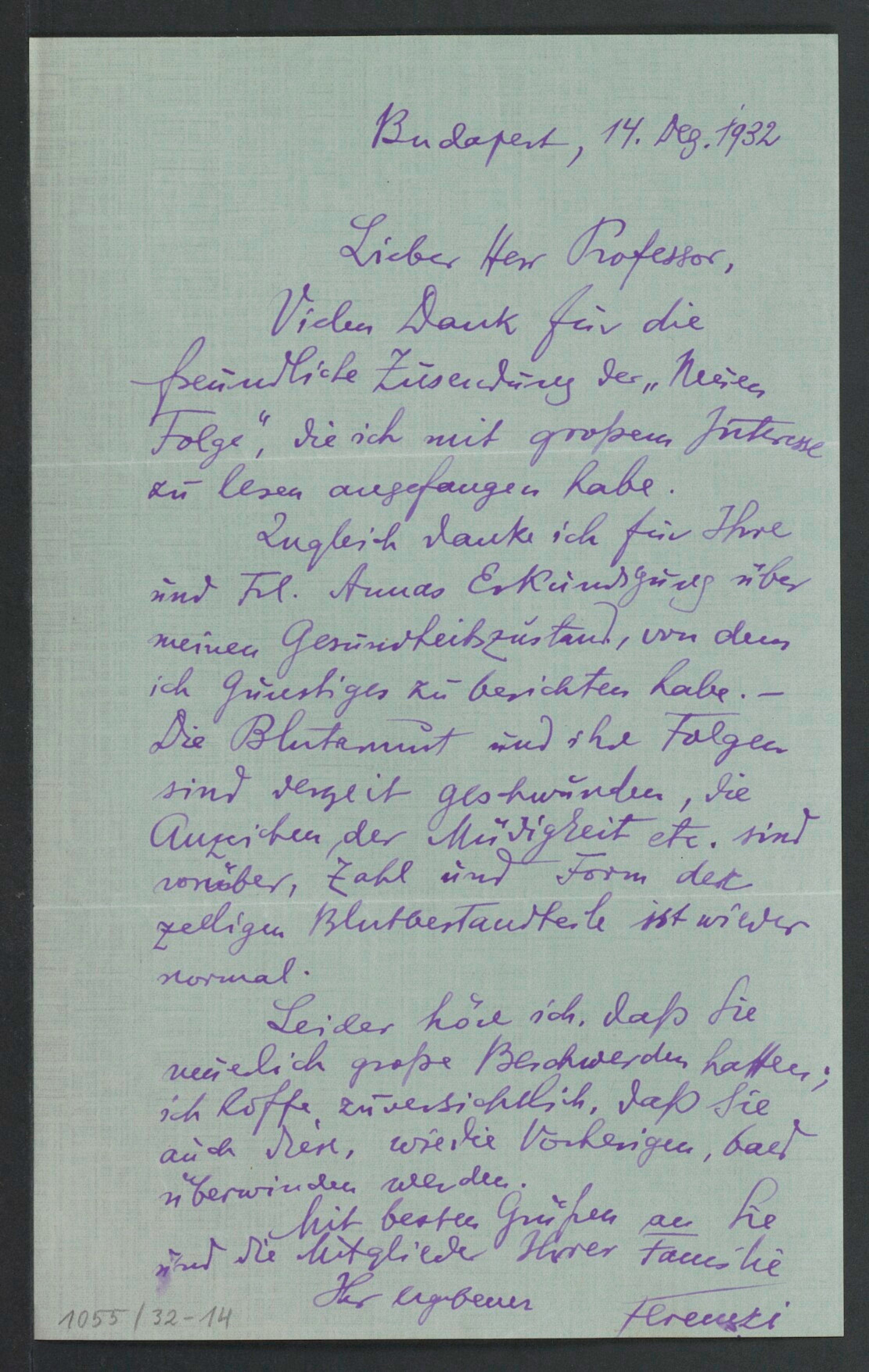 Freud, Sigmund, 1856-1939 [VerfasserIn] ; Ferenczi, Sándor, 1873-1933 [AdressatIn]