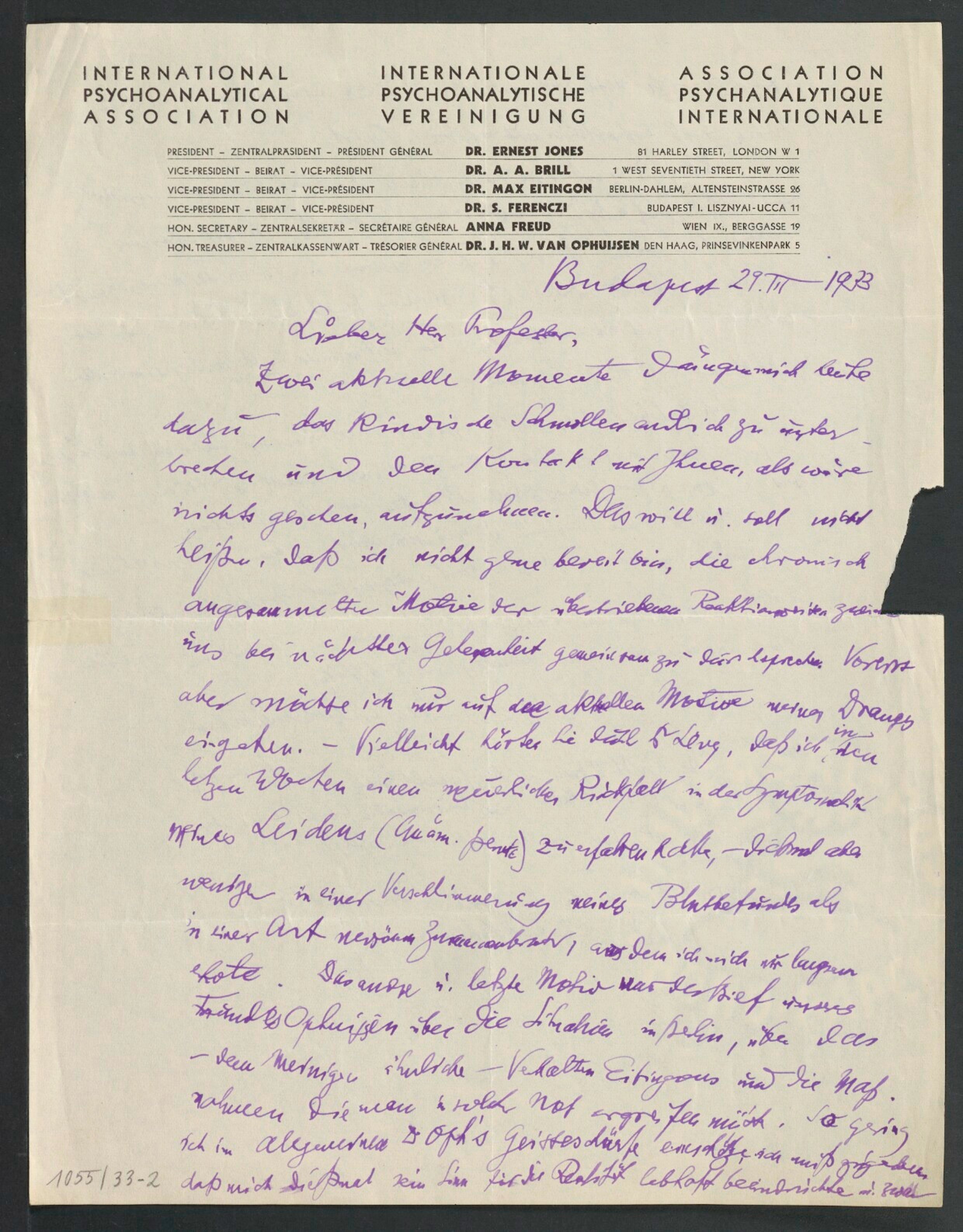 Freud, Sigmund, 1856-1939 [VerfasserIn] ; Ferenczi, Sándor, 1873-1933 [AdressatIn]