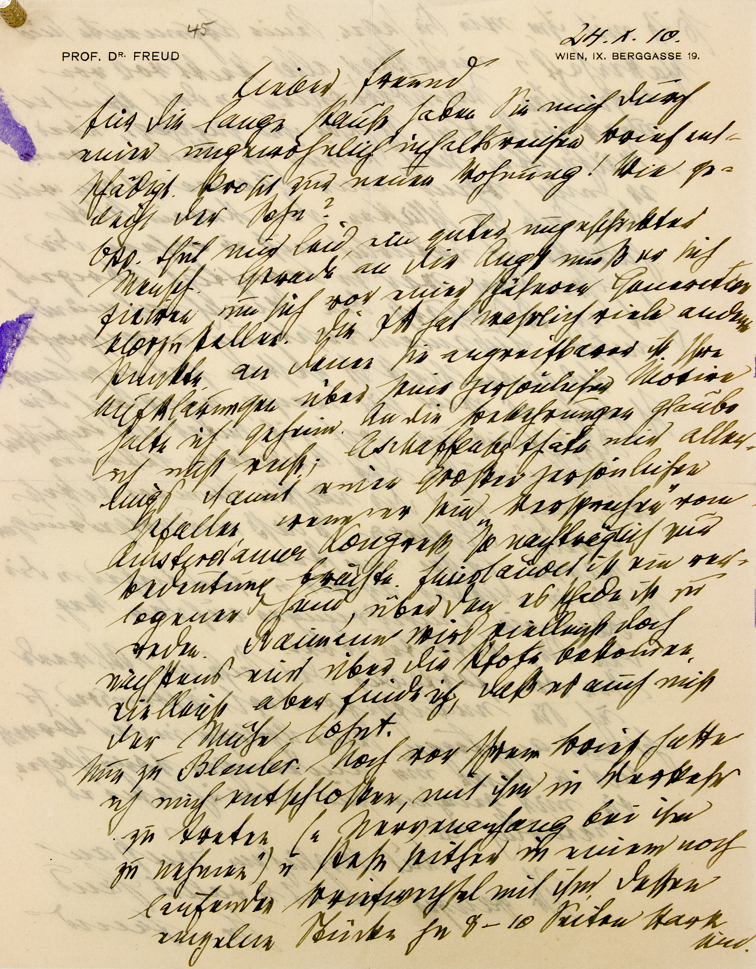 PROF. DR. FREUD WIEN, IX. BERGGASSE 19.Lieber Freund
