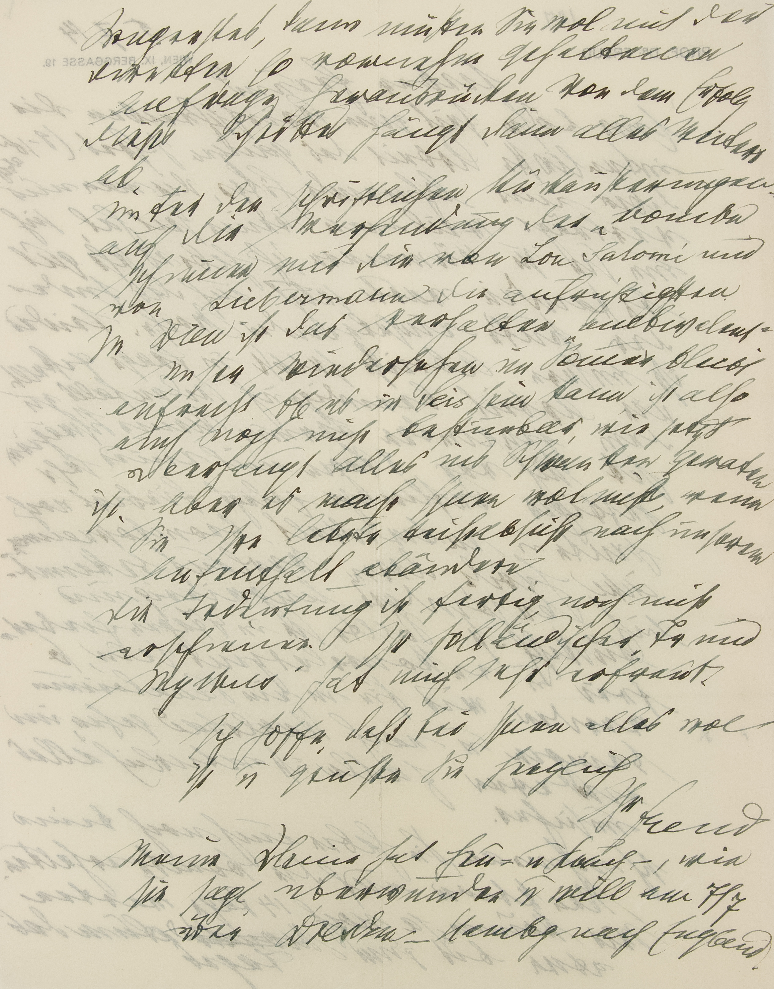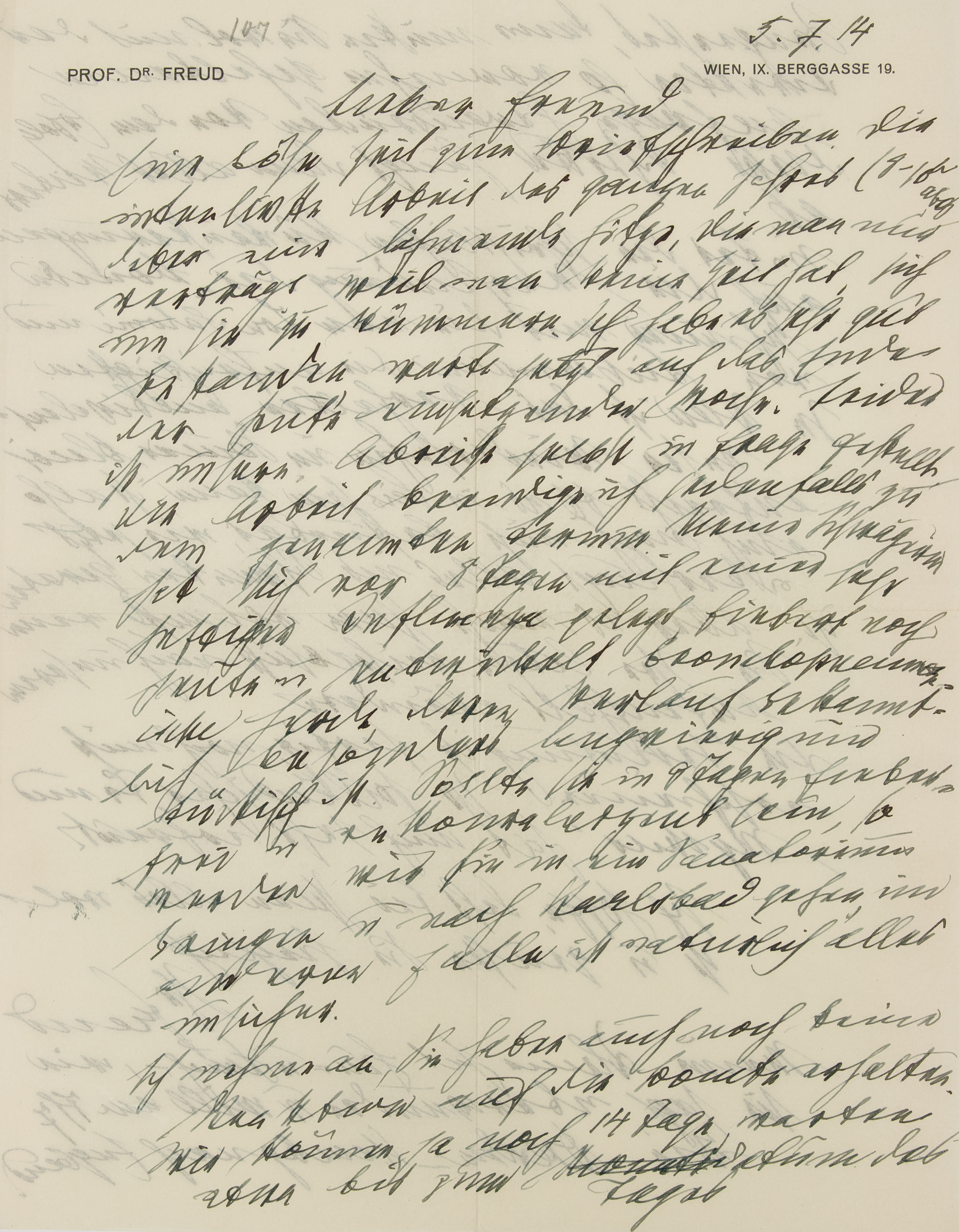 PROF. DR. FREUD WIEN, IX. BERGGASSE 19.Lieber Freund