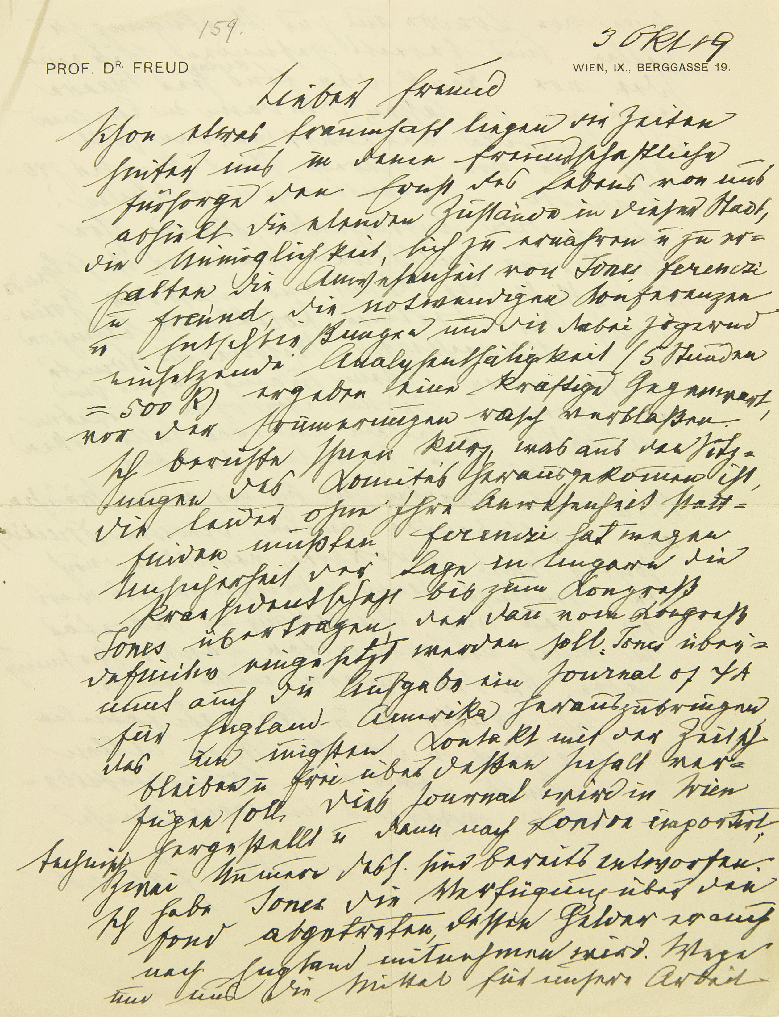 Schon etwas traumhaft liegen die Zeiten hinter uns, in denen freundschaftliche Fürsorge den Ernst des Lebens von uns abhielt. Die elenden Zustände in dieser Stadt, die Unmöglichkeit, sich zu ernähren und zu erhalten, die Anwesenheit von Jones, Ferenczi und Freund, die notwendigen Konferenzen und Entschließungen und die dabei zögernd einsetzende Analysentätigkeit (fünf Stunden = 500 K) ergeben eine kräftige Gegenwart, vor der Erinnerungen rasch verblassen. Ich berichte Ihnen kurz, was aus den Sitzungen des Komitees herausgekommen ist, die leider ohne Ihre Anwesenheit stattfinden mußten. Ferenczi hat wegen Unsicherheit der Lage in Ungarn die Präsidentschaft bis zum Kongreß Jones übertragen, der dann vom Kongreß definitiv eingesetzt werden soll. Jones übernimmt auch die Aufgabe, ein Journal of Psychoanalysis für England – Amerika herauszubringen, das im innigsten Kontakt mit der Zeitschrift bleiben und frei über deren Inhalt verfügen soll. Dies Journal wird in Wien technisch hergestellt und dann nach London importiert; zwei Nummern desselben sind bereits entworfen. Ich habe Jones die Verfügung über den Fond abgetreten, dessen Gelder er auch nach England mitnehmen wird. Wege, um uns die Mittel für unsere Arbeit -